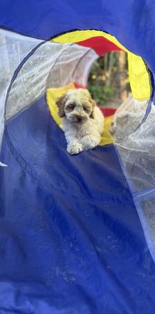 Our puppies include miniature and medium sizes. Sizes will vary depending on the parent dogs.