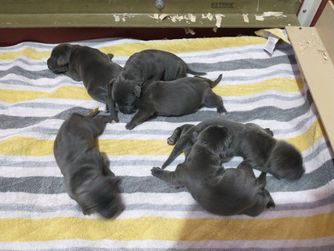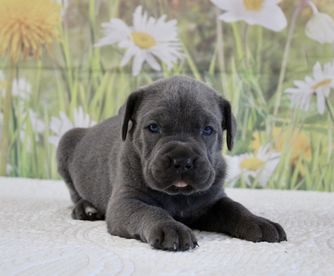 Our puppies include black, black brindle, and gray. Colors will vary depending on the parent dogs.