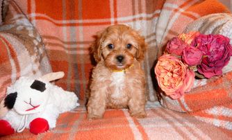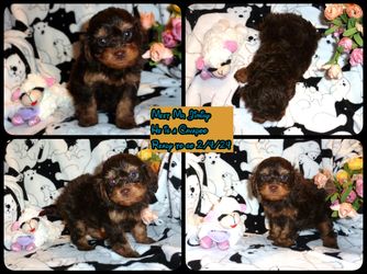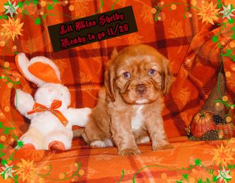 Our Cocker Spaniel puppies include brown and white and sable and white. Cavapoo puppies include red and chocolate. Colors will vary depending on the parent dogs.