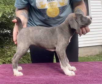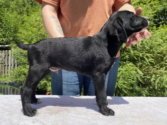 I'm Mandy M., the breeder behind Walnut Ridge Mountain Curs located in Georgetown, OH. I strive to keep the Mountain Cur breed true to its extremely versatile working abilities and healthy genetics. Please feel free to ask any questions. my website with dog info is www.walnutridgemountaincurs.com All of my breeding dogs have been DNA tested by Embark an are not affected by any of the genetic disease in their database. They have also been DNA profiled. All dogs and puppies are fed Royal Canin, dewormed every 2 weeks, and given monthly flea/heartworm prevention. I introduce the puppies to early neurological stimulation and work with them every day. My puppies are raised at my home and go through a "puppy preschool" where they learn their basics and socilization. Their socialization consists of a large variety of sights, smells, sounds, and objects that can be scary to a puppy. Different surfaces such as linoleum, carpet, concrete, wood, grass, dirt, etc., climbing structures, water, exercise pen, potty training basics, stacking and bench practice, raccoon and squirrel scent imprinting, and are given lots of love and attention every day. Puppies will be current on vaccines, Bordatella (at 3 weeks) Combo vaccinations (6 and 8 weeks). When you purchase a Walnut Ridge puppy, you are getting more than just a hunting dog, you are also getting a well started, loyal, best friend. My "puppy preschool" program prepared the pups for their new homes, owners, and jobs. A great dog begins with a great breeding and training program!