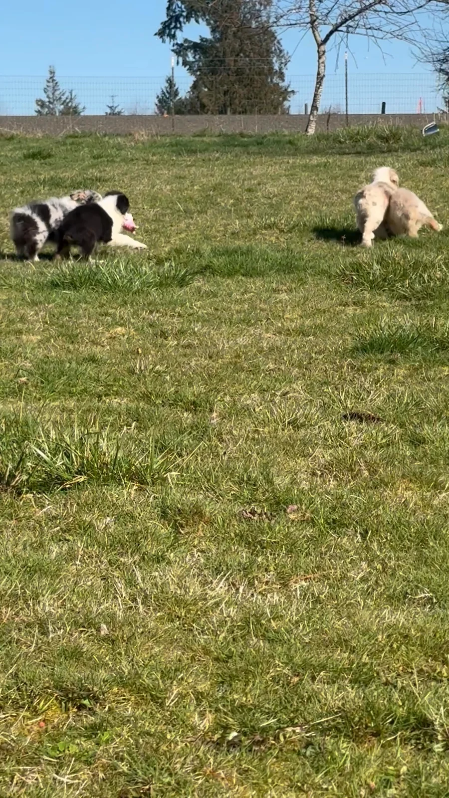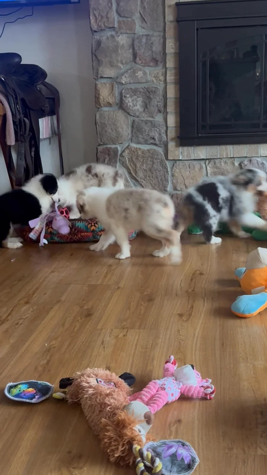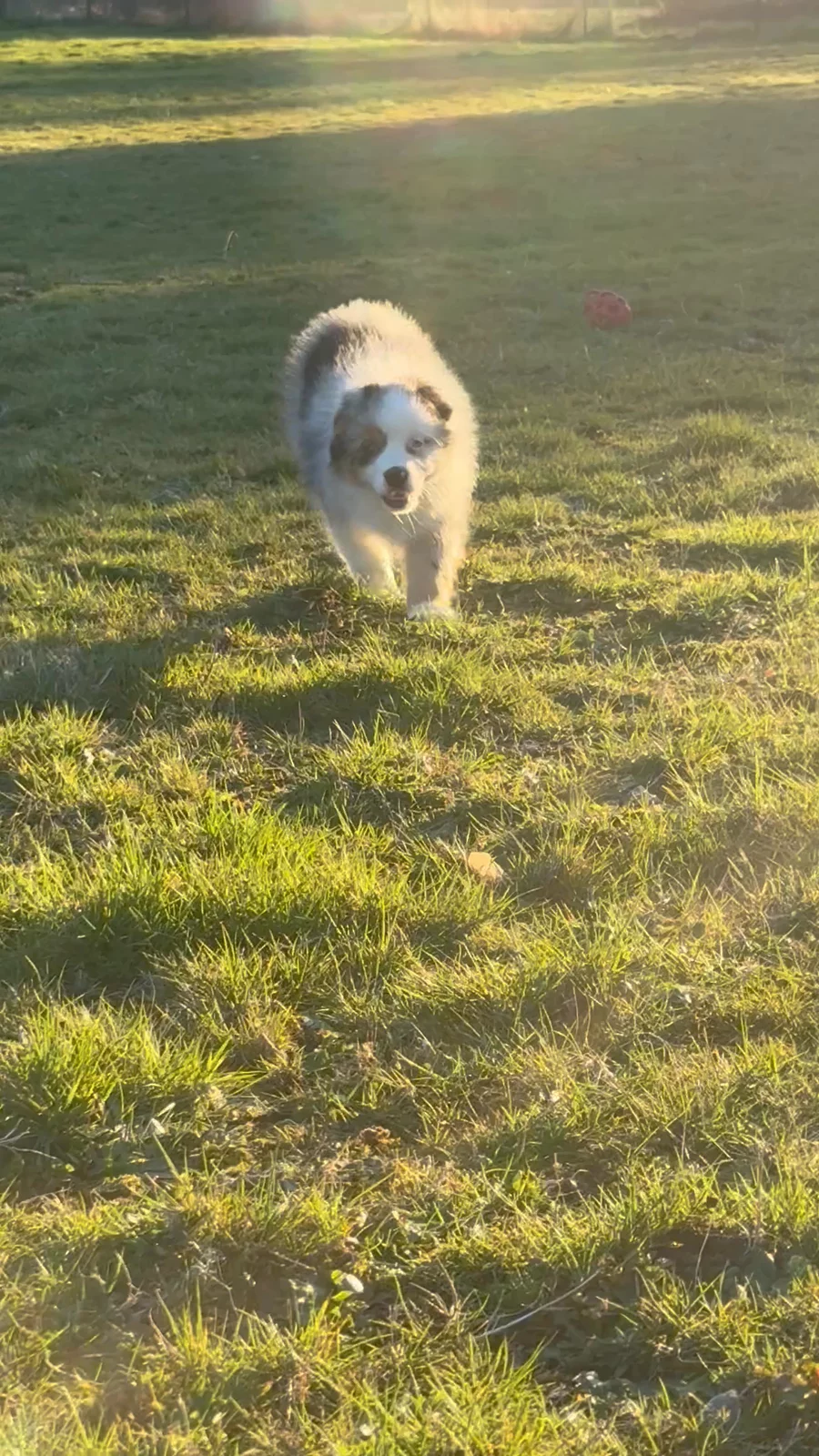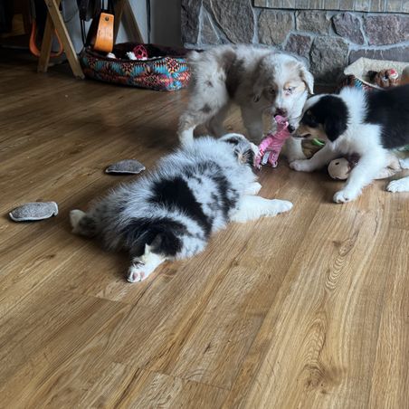 With Aussies, there are different drive levels: low-high. We have all levels here, but even with our high drive dogs, they have an off switch! Our dogs are great with working all day on our farm or they are happy to sleep and watch movies. We are a Washington State licensed and inspected kennel (yes, our animals still come in the house and play.) As well as an AKC Bred with Heart Breeder.