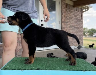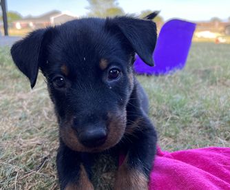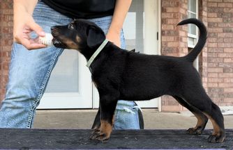 I'm Ashley D., the breeder behind Wanderlust Beaucerons located in Haslet, TX. A strong stable temperament is a top priority for us. All of our dogs need to pass health testing. Our dogs live in the house with us and are family members. Our overall goal with all of our dogs is to find the sports they love and give them the opportunity to thrive.