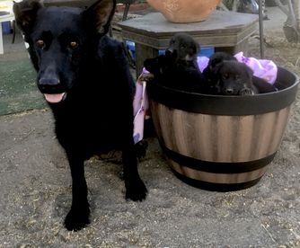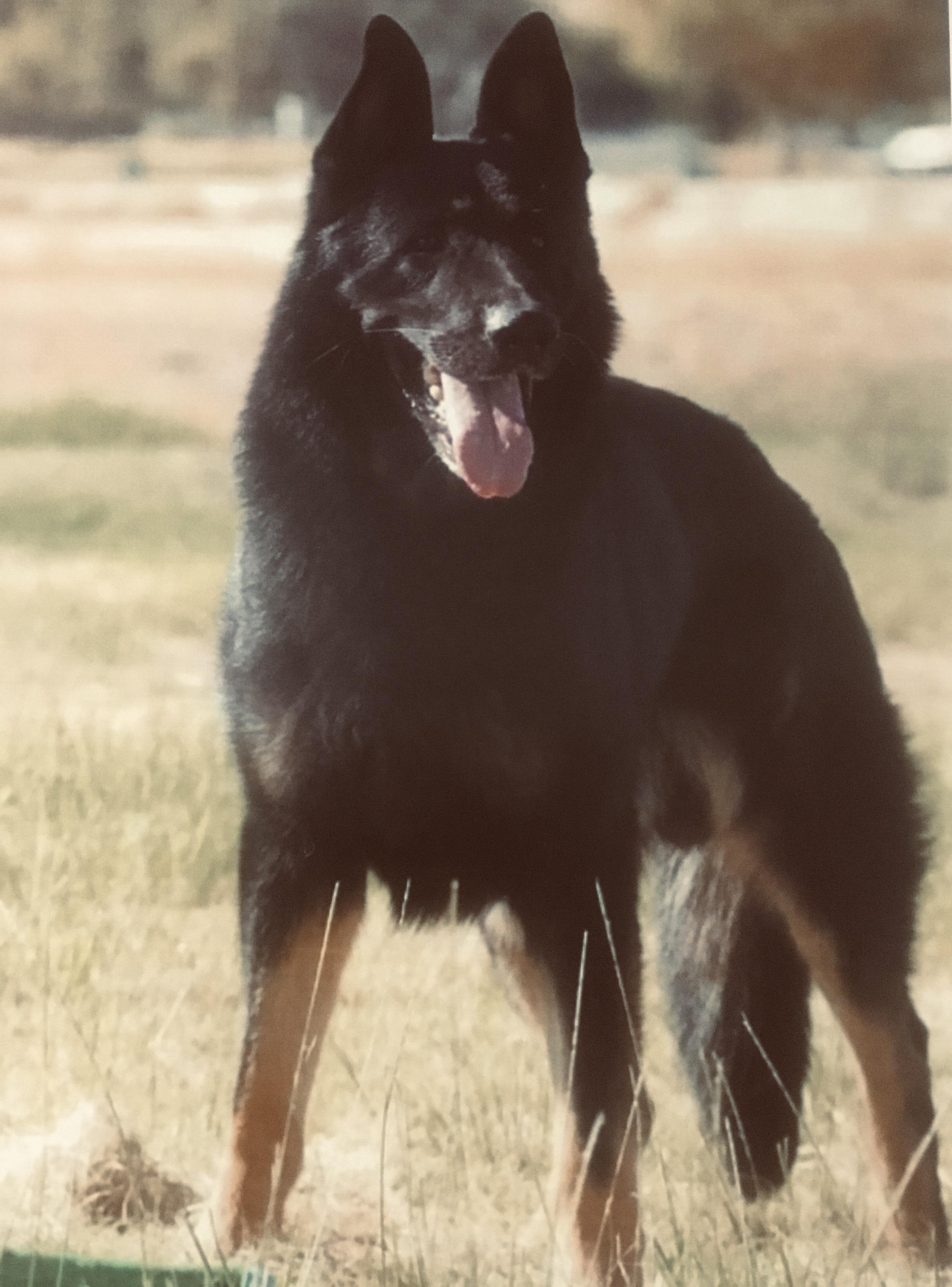 I'm Tina L., the breeder behind War Cry German Shepherds located in Phelan, CA. I’ve been breeding German Shepherds since 1986. I compete in AKC obedience, conformation, Schutzhund and sheep herding. I’ve also worked in the entertainment industry for 30 years and a lot of my dogs have been in print ads, sitcoms, movies, and documentaries. You can see a list of these on my website at warcrygermanshepherds.com. I’ve also supplied puppies to Guide Dogs of America.