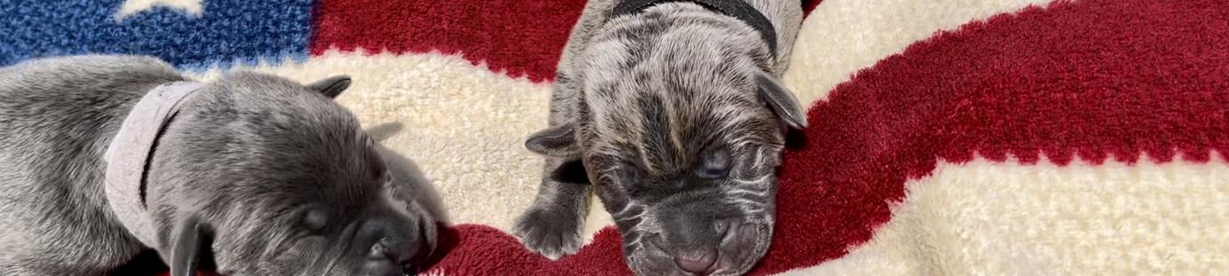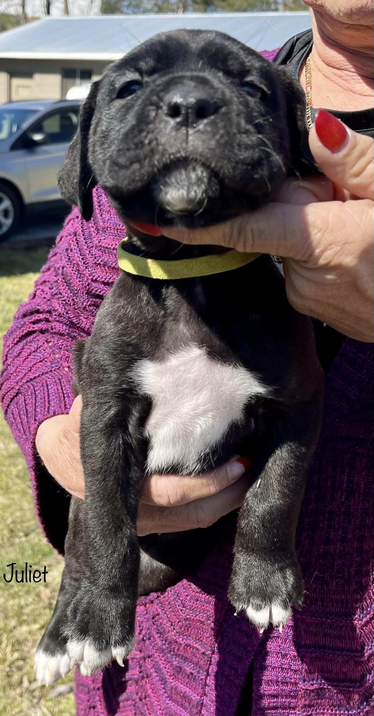 Our puppies include black, black brindle, and gray brindle. Colors will vary depending on the parent dogs.