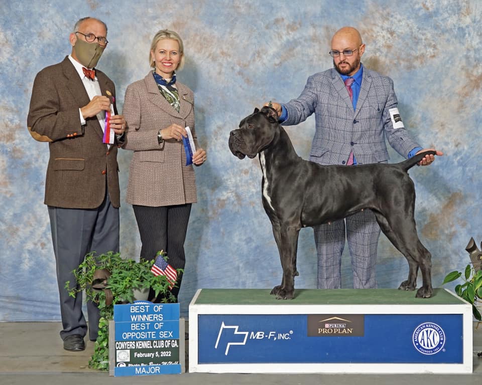 Widow is a female Cane Corso. Carefully selected as a great representative of her breed, Dennis decided to make her part of their program. Dennis has passed Good Dog’s screening process, which involved a review of their breeding practices, environment, and the mental and physical health of their dogs.