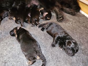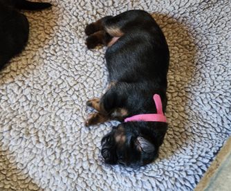 Our puppies are black and red. Colors will vary depending on the parent dogs.