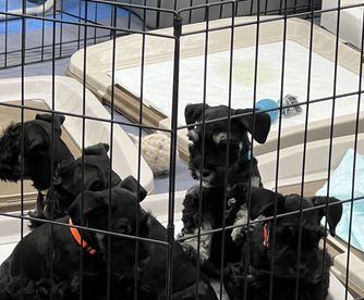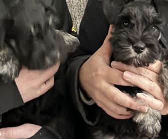 Our puppies include salt and pepper, black and silver, and black. Colors will vary depending on the parent dogs.
