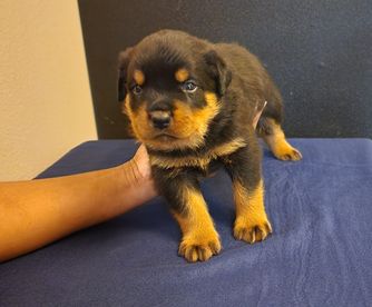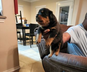 We had been talking and looking for a Rottweiler for awhile doing a internet search we came across Mr Ward’s decided to get in contact with him after talking and Mr Wards send us photos of Clyde what we named him and a litter more talking this is Rottweiler for us.Mr Wards was very knowledgeable about this breed very friendly so after several texts messages back and forth we made arrangements to buy our dog how every we live almost 900 miles away. Mr Wards took care of that on Saturday afternoon he called to let us know he was willing to meet us halfway way the following Saturday or a second choice was to have a carrier can deliver We chose the carrier in watch Mr Wards made all the arrangements and by Sunday morning we had our Clyde very healthy and happy so in closing if you are looking to have a family member Mr Wards is the go to dog breeder Thank very much Mr Wards Thank You