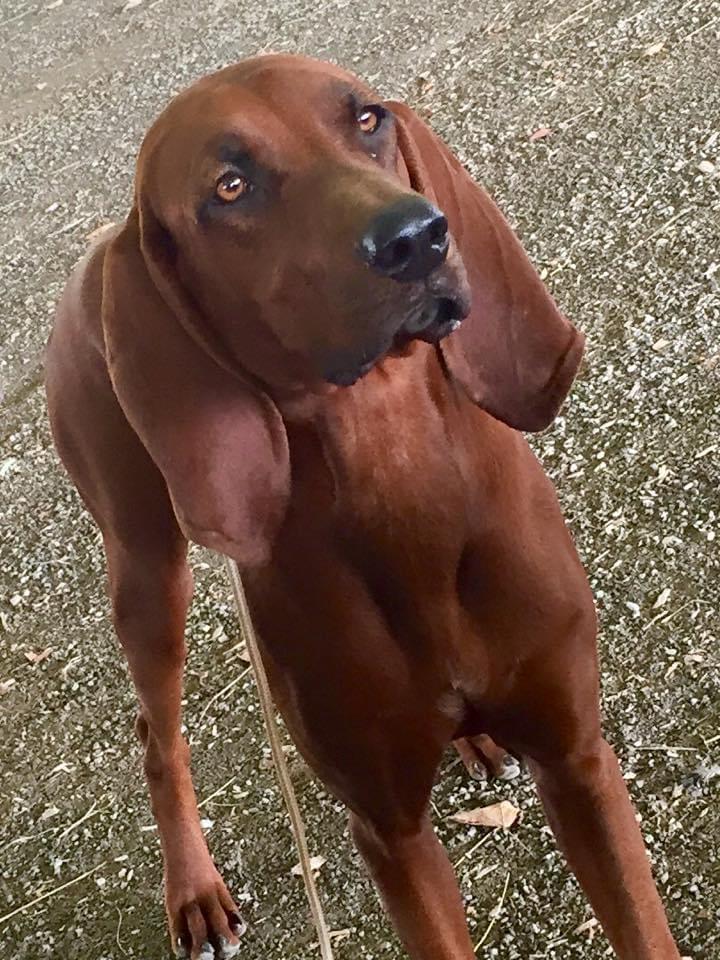 Pepsi is a female Redbone Coonhound. Carefully selected as a great representative of her breed, Kayla decided to make her part of their program. Kayla has passed Good Dog’s screening process, which involved a review of their breeding practices, environment, and the mental and physical health of their dogs.