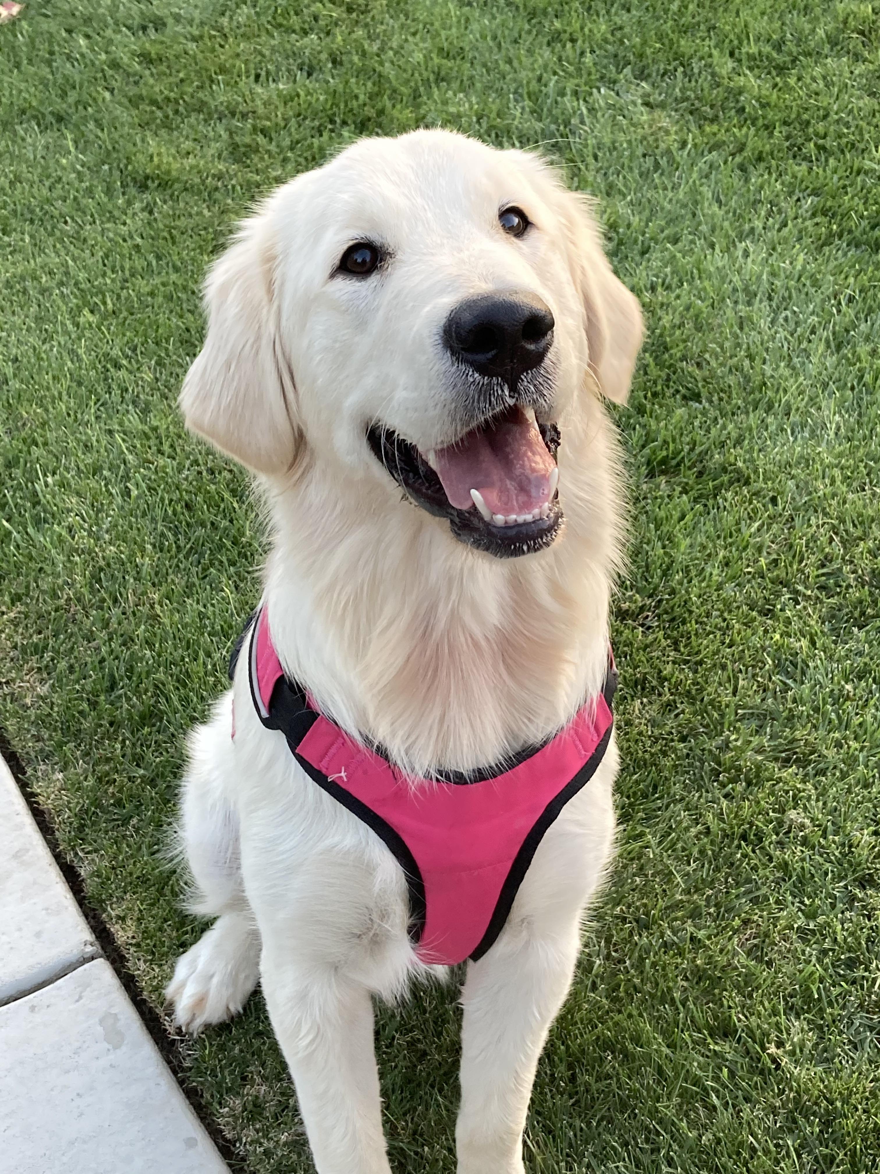 Sally is a sweet gentle-natured pure joy Golden. She loves her family and her morning walks, along with playing fetch, family swims in the pool and belly rubs from her daddy. Her parents are calm, and they have a gentle demeanor which makes her wonderful around kids. They're
