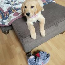 I'm very happy with the puppy (Lizzy) we got from Debbie. This is my 6th golden and 5th one I raised as a puppy. Lizzy is by far the easiest puppy I’ve raised and I attribute it to the early socialization she received and her temperment. She likes all people, birds, dogs and cats. Also not afraid of loud noises including fireworks. In looking back at the evaluation of Lizzy performed by Debbie, it turned out to be pretty close to her current personality. I would say that Debbie raises some quality Golden Retrievers.