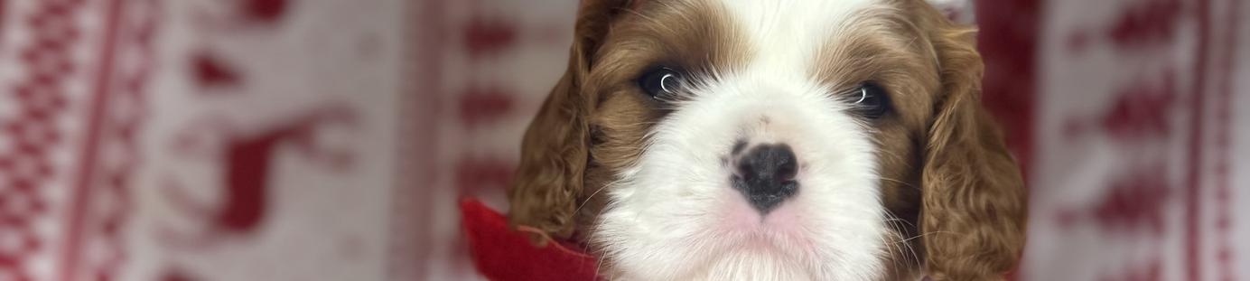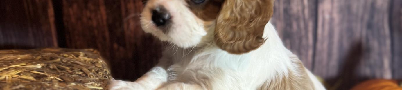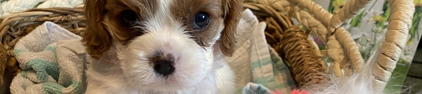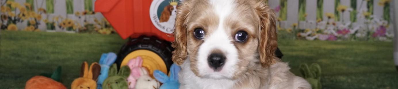Our puppies are blenheim. Colors will vary depending on the parent dogs.