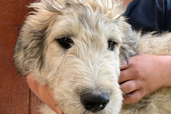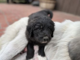 Our Pyredoodle puppies include white, blue, gray, cream, brindle, black, and apricot. Colors will vary depending on the parent dogs.