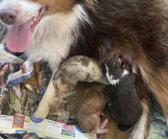 Bikini is a female Miniature Australian Shepherd almost 7 years old. Carefully selected as a great representative of her breed, Shannon decided to make her part of their program. Shannon has passed Good Dog’s screening process, which involved a review of their breeding practices, environment, and the mental and physical health of their dogs.