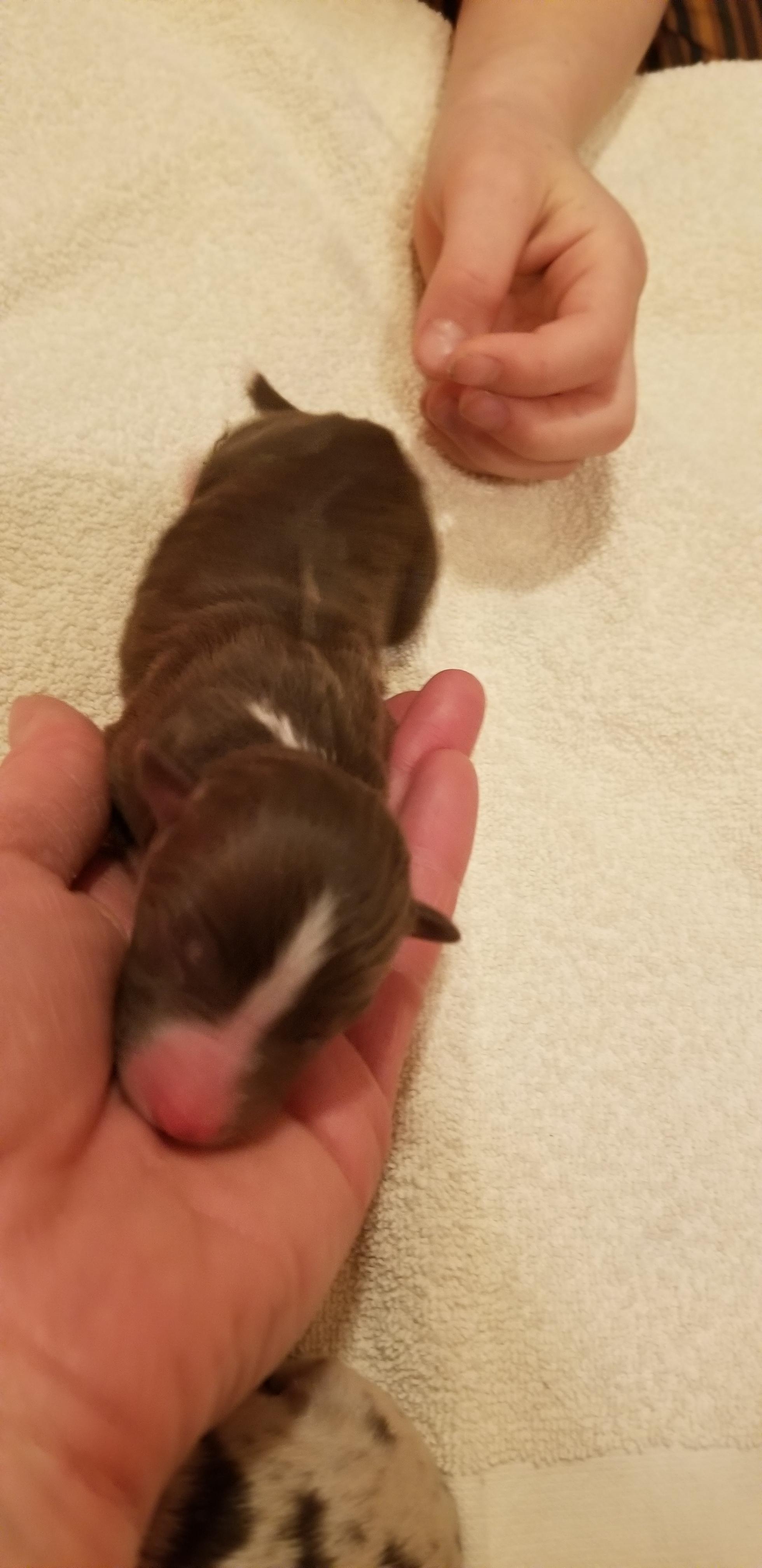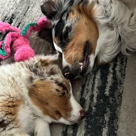 Charisse was great to work with on our puppy adopting journey! We have been looking for an Aussie puppy for a long time and we are so happy with the process and most importantly the sweet puppy we got from Charisse and her family. Charisse and her family drove to meet us to help shorten our long car ride home and made the experience so easy. Our puppy is brave, confident and so happy to be around people and our older dog, Josie. He is settling into our family perfectly and we couldn't be happier.