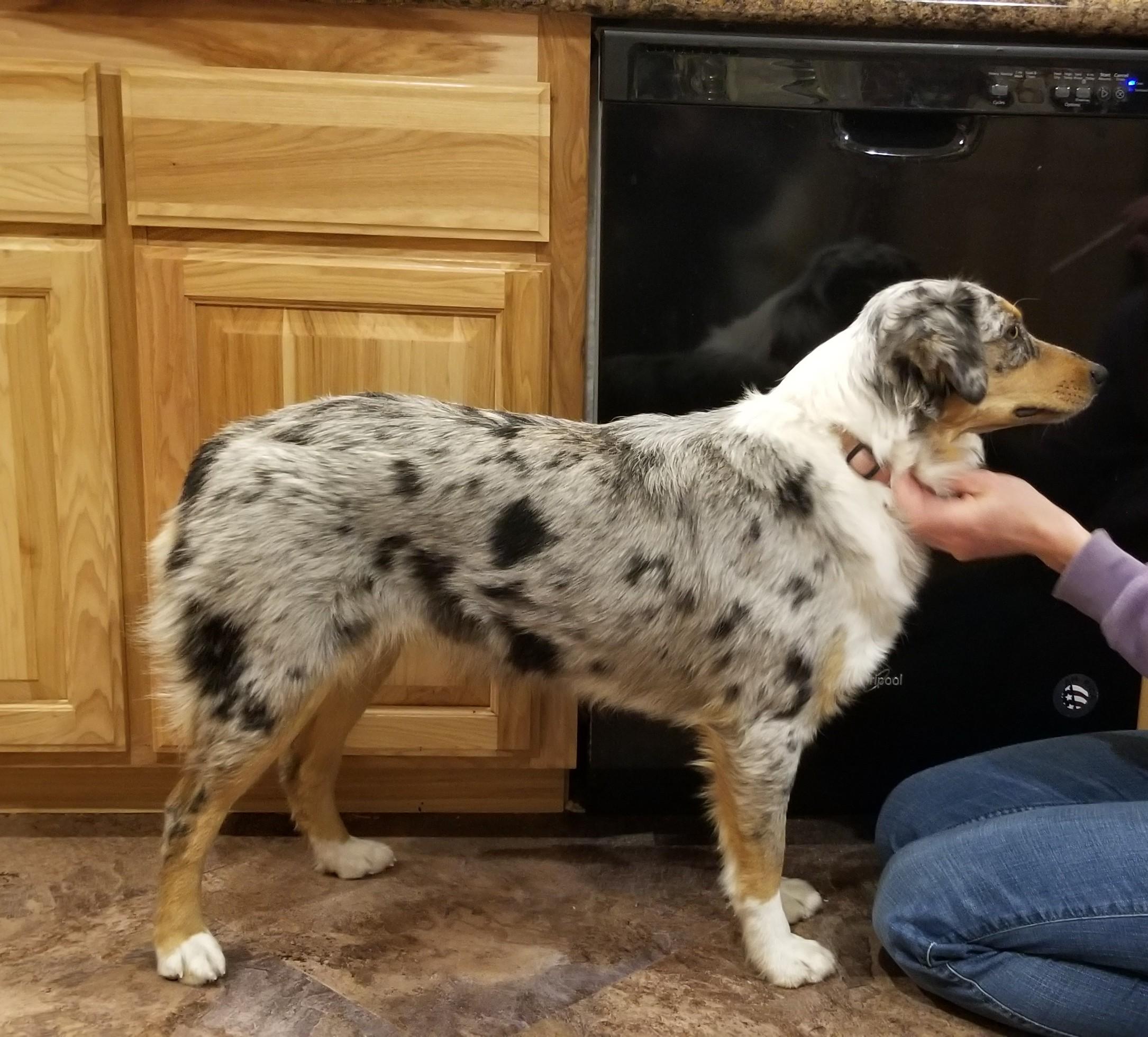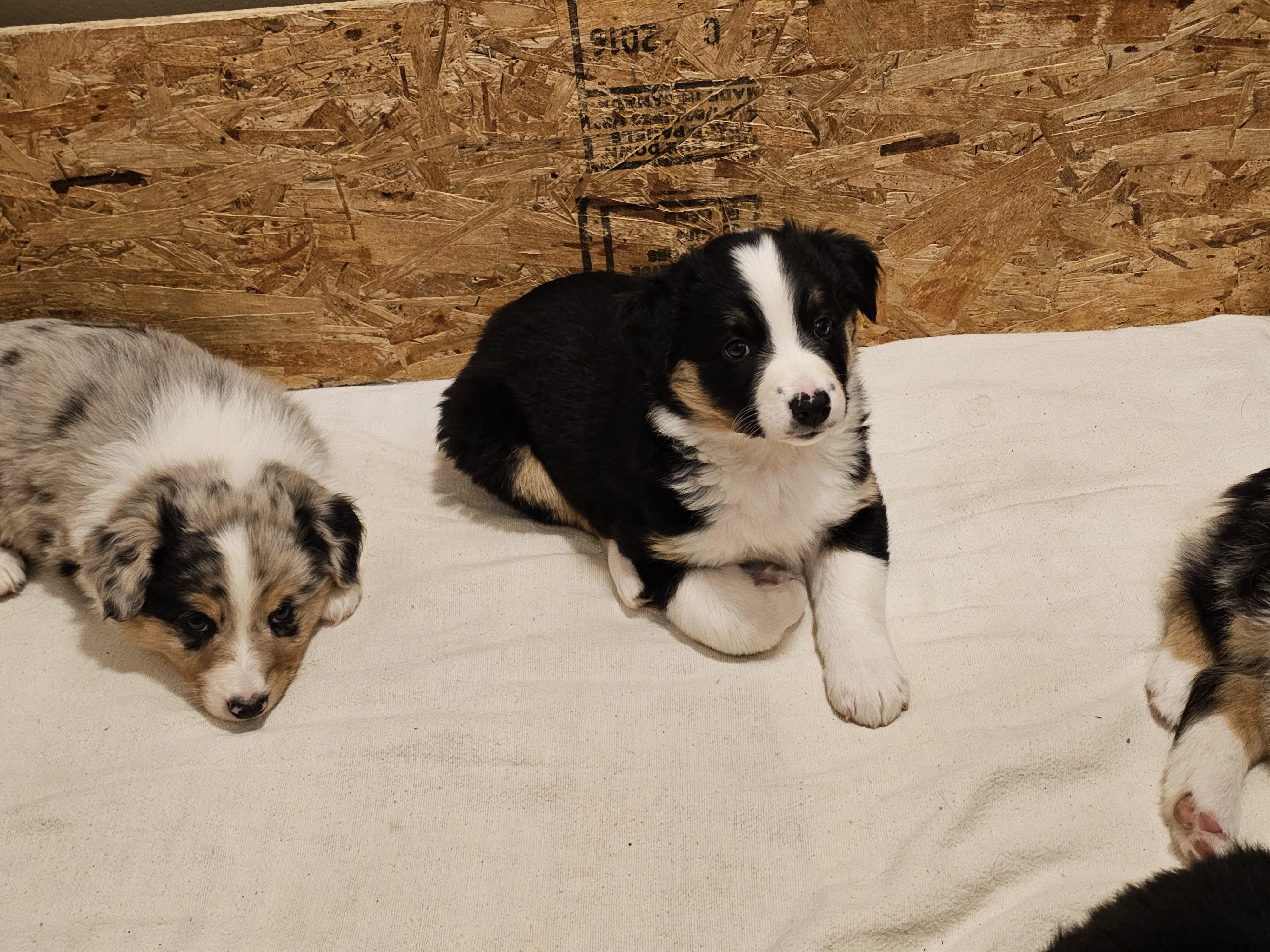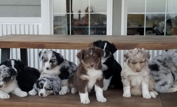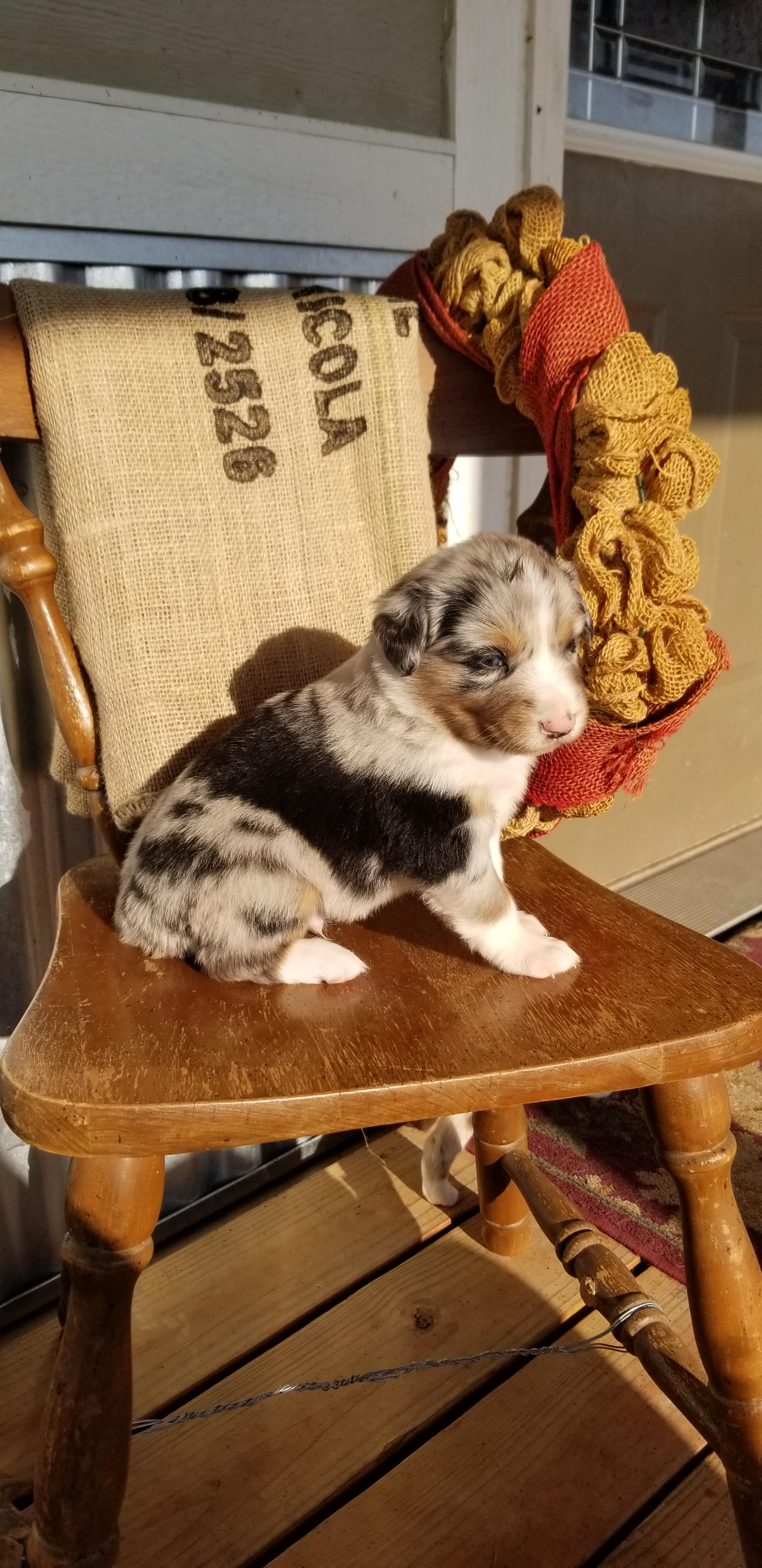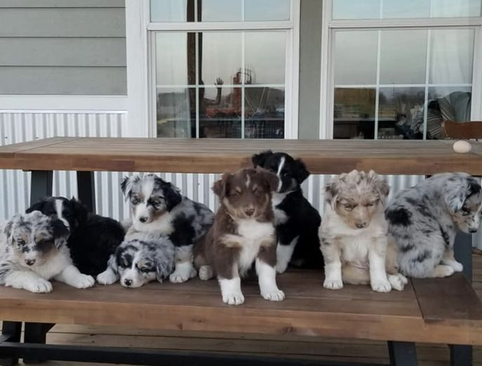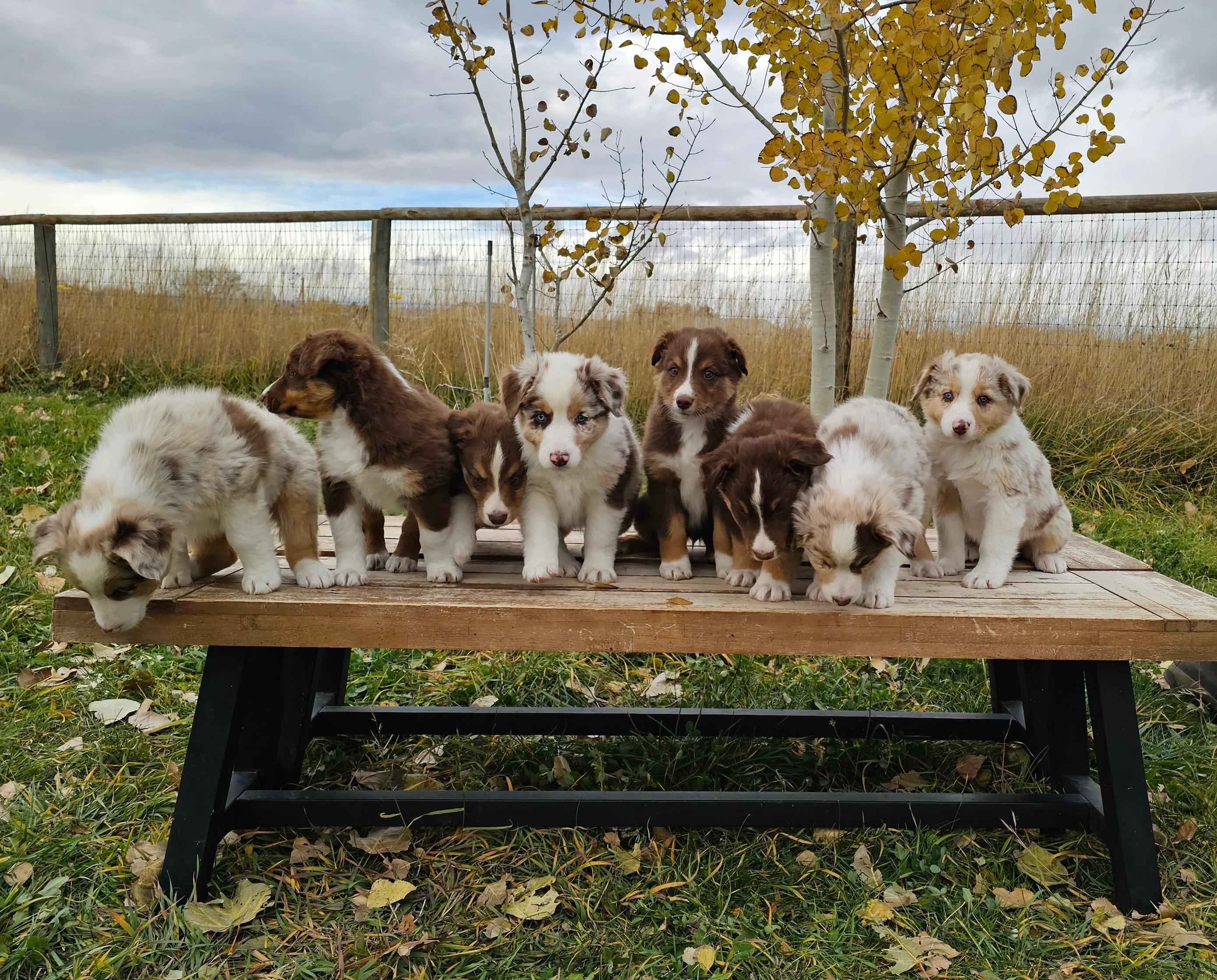 Our puppies include red merle, blue merle, black tri-color, and red tri-color. Colors will vary depending on the parent dogs.