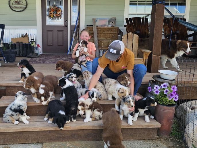 I'm Charisse W., the breeder behind Waterworth Australian Shepherds located in Powell, WY. We work hard to produce healthy, well-rounded Australian Shepherd puppies that will make others as happy as our dogs have made us! We offer well-rounded, healthy, Australian Shepherd puppies who will excel in any adventure with their new family! Our dogs are intelligent, loving, and athletic, and they produce puppies who will thrive in an active lifestyle. We're passionate about these dogs and are careful to breed and raise our pups with only the best policies.