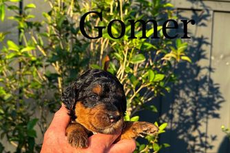 We love animals and have always wanted to breed. When we got Maggie we decided it was the right time. She is an amazing dog, and we wanted others to experience the love of a bernedoodle. We also thought this would be a great addition to our homeschooling adventures- which it has been. Our two children at home have been super involved in breeding Maggie and taking care of the puppies.