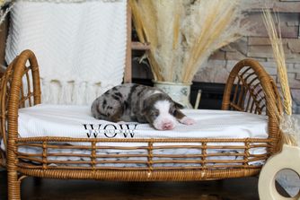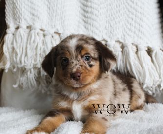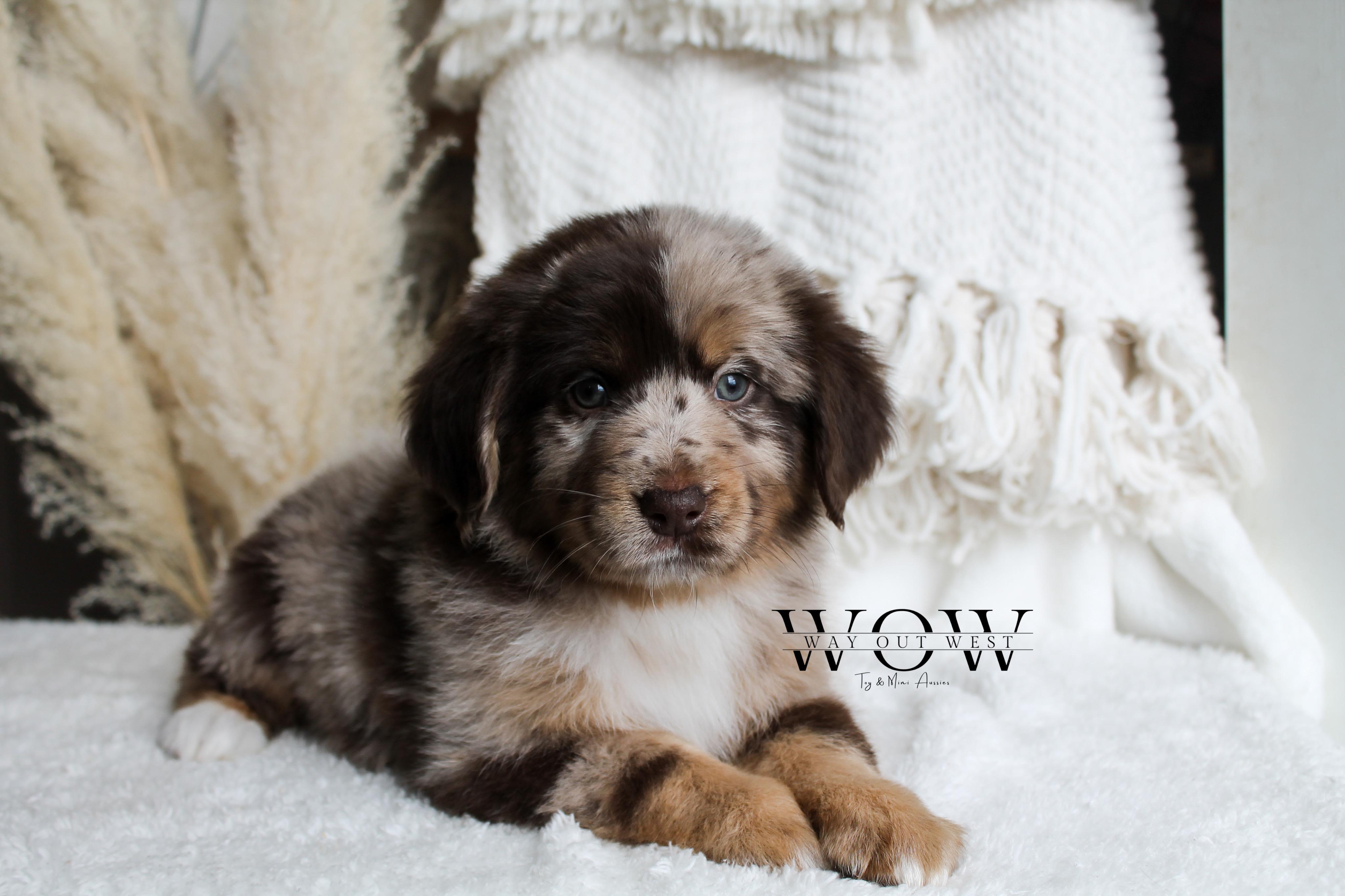 I'm Ally W., the breeder behind Way Out West Toy & Mini Aussies located in Oshoto, WY. We are a hobby breeder who focuses on molding puppies to be the best family member they can be. All adult dogs live indoors with us or their guardian home family. We specialize in minimal white with bold markings. All pups are raised in our home, are health tested, ASDR, and litter-box trained.