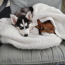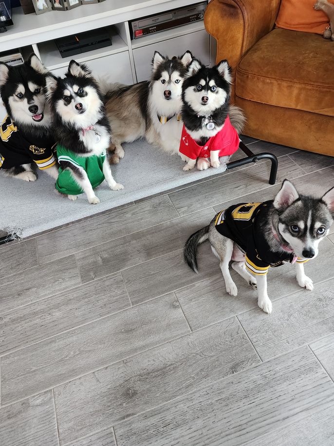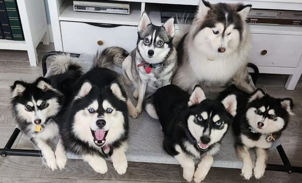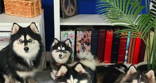 How did we get into breeding? Well; what does one do when your House is finally finished getting built (you know, with your brand-new baseboards and your brand-new White couches), and your Dad dies? Well you get a Pomsky puppy, as one does, right? Ok, maybe the Worst decision, in history, to make in those circumstances But, it ended up being one of the best we've ever made. So, 1 yr later (again, as one does) got Sebastian, the sweetest companion ever, and they became BESTIES, and then well,..... Here we are :). And NOW we have 6, And it's Amazing! (It's not as crazy as it sounds)