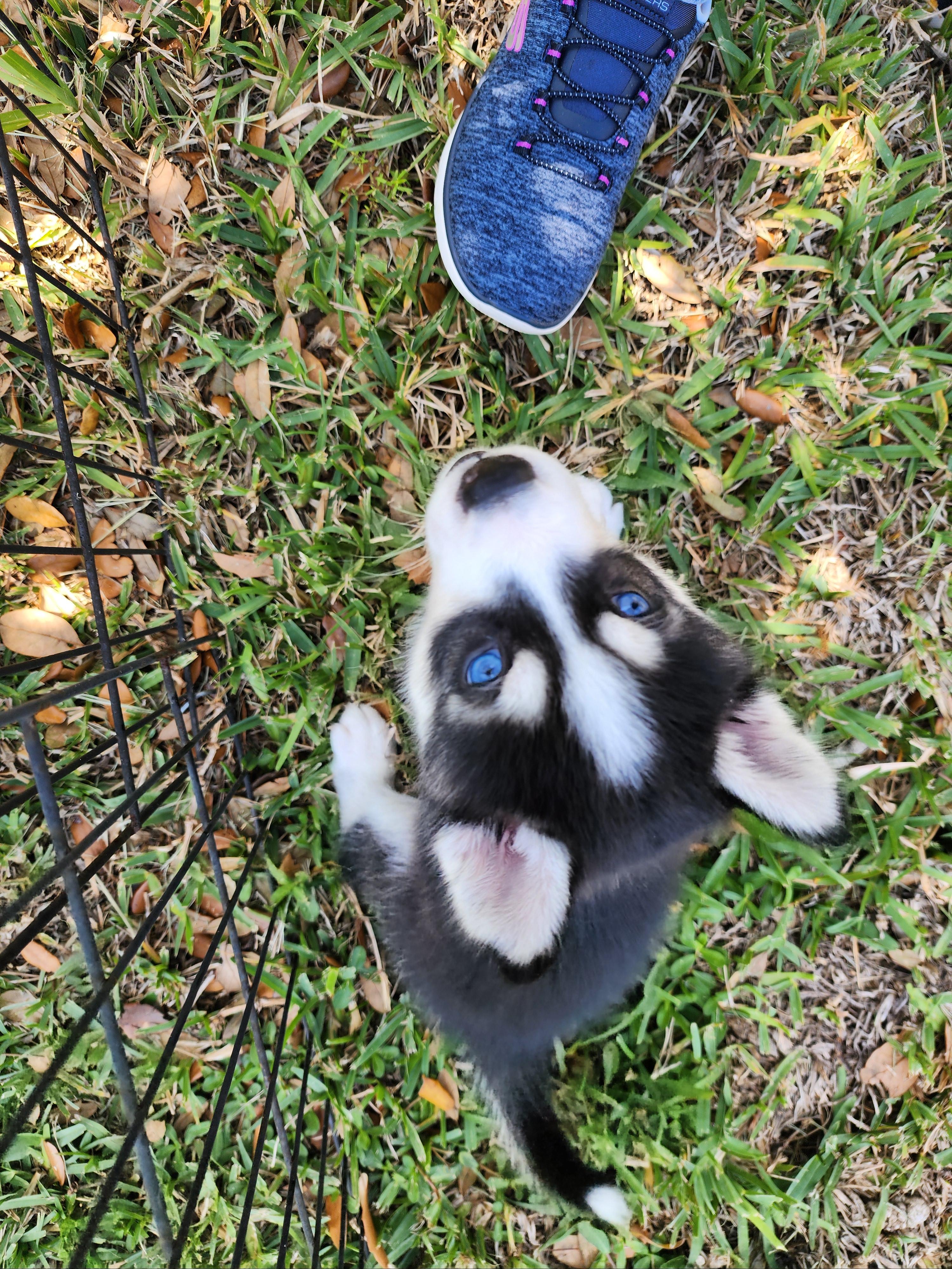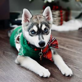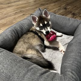 Way too cute pomskies was very responsive from the beginning. We recently were scammed out of a dog and found this breeder. We were skeptical about buying a dog online again but They agreed to meet us so we can see her in person. When we got Hina, she already didn’t chew on anything or bite. She’s been such a good dog from the very beginning. We still keep in touch with Way too cute pomskies as well, with advice and fun stories!
