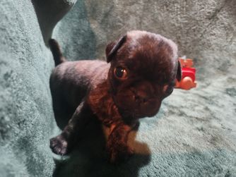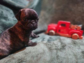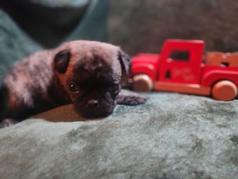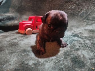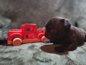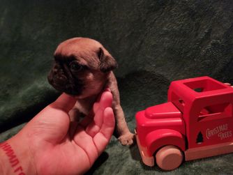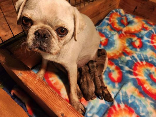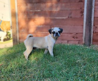 We focus on producing Pugs that are functional, with a reasonable amount of wrinkles and muzzle length. Our pups are able to go hiking, swimming, and so much more. They can keep up with my larger dogs and need little accommodations to do so.