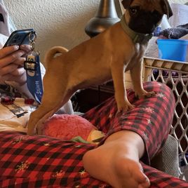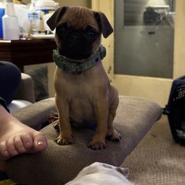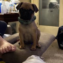 Cricket is a female Pug about 6 years old. Carefully selected as a great representative of her breed, Jason decided to make her part of their program. Jason has passed Good Dog’s screening process, which involved a review of their breeding practices, environment, and the mental and physical health of their dogs.