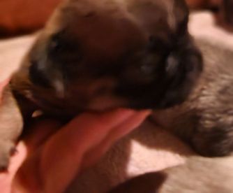 Omg I was so worried about buying from a person I knew nothing about, however all my questions were answered beforehand and the kindness and excitement from Jayson was just what I needed to calm my worries. We are very attached to our little girl with her personality growing daily she has much to learn but is catching on quickly. Sit and potty outside are her favorite tricks right now but she is quickly starting to master place and stay. We love our little padwan.