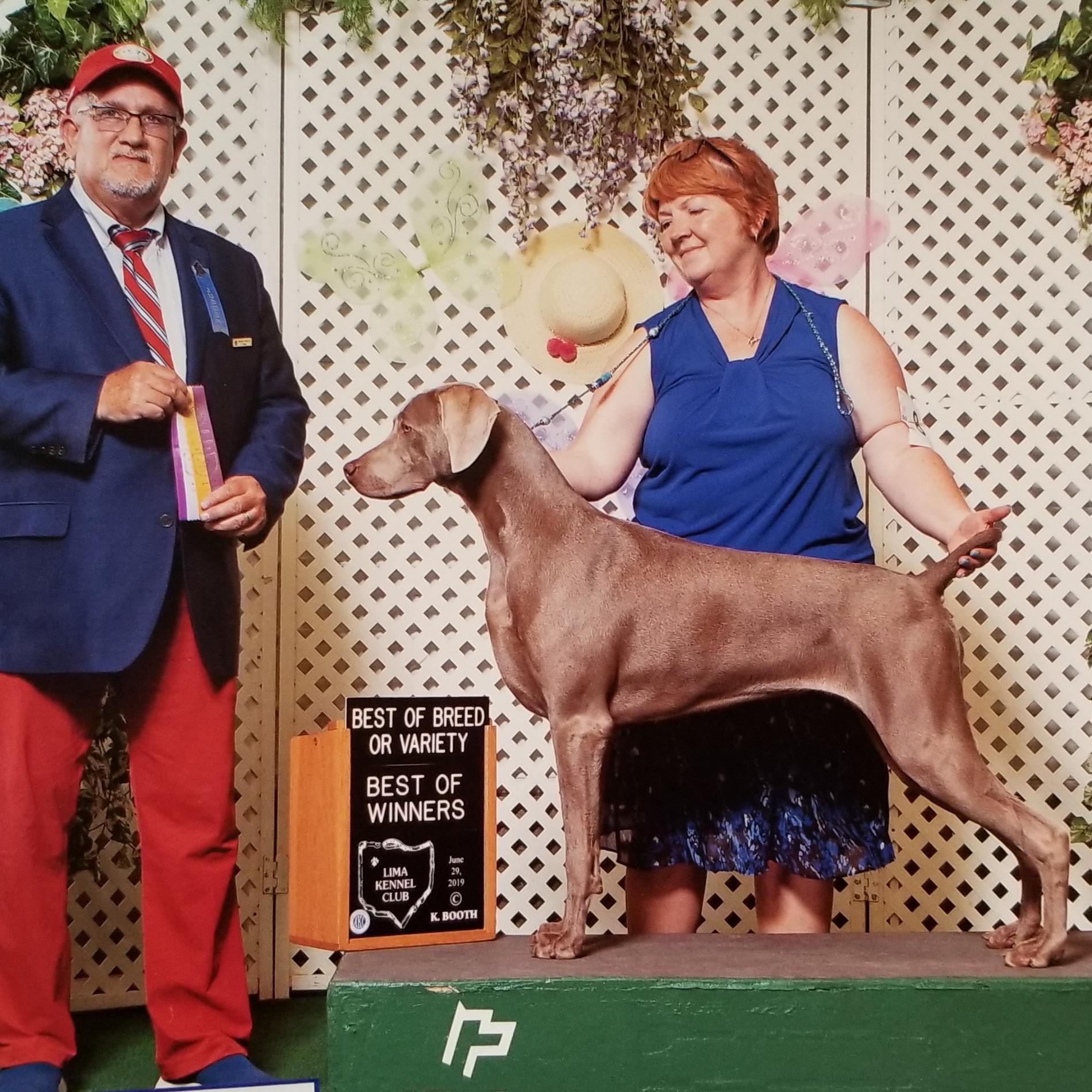 Both my husband and I grew up on farms with a variety of animals. His parents owned and showed Weimaraners growing up. I fell in love with the breed and have never turned back. I was interested in a competitive activity so I got into showing my dogs. Watching my dogs excel in the ring gave me the desire to produce more high quality dogs which led to beginning my breeding program. It has been an absolute joy to breed and raise these wonderful dogs and to share them with others who love them as much as I do.