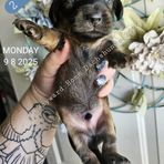 “All pups are AKC registered, wormed on schedule with Nemex-2, up to date on age appropriate vaccinations, and microchipped before they go home. Deposits are not refundable, but can be transferred to a different puppy if desired.”