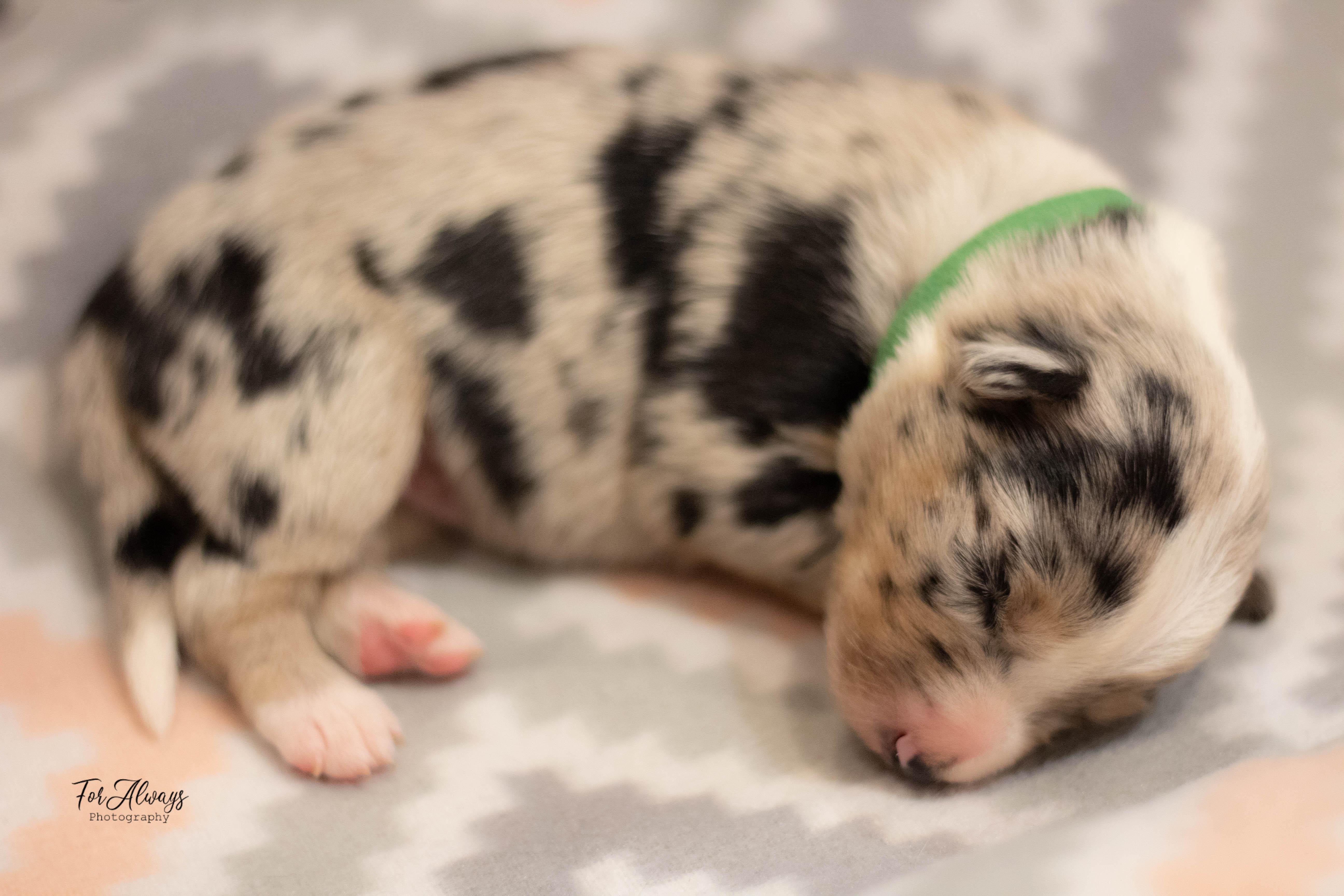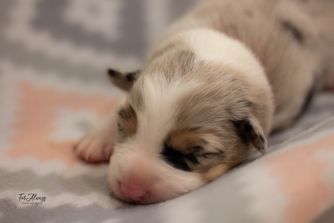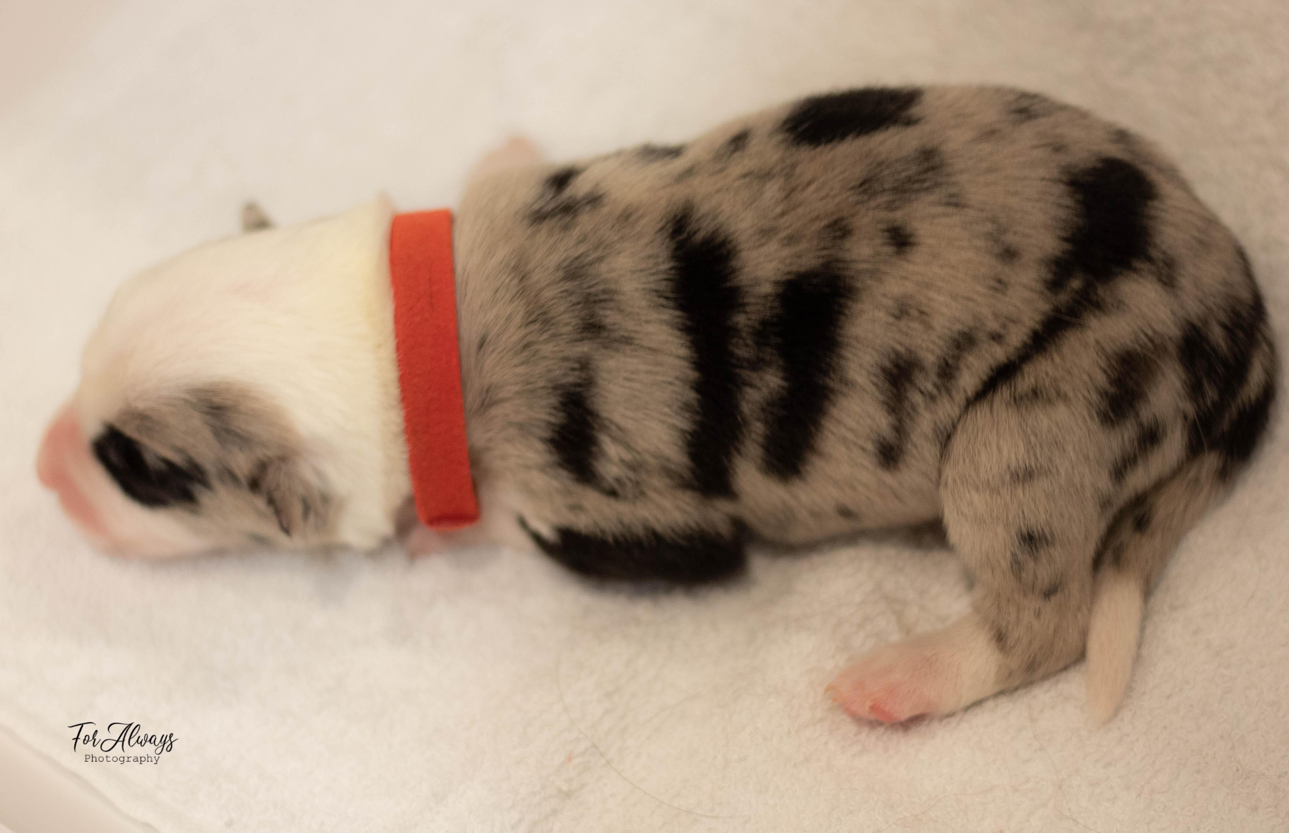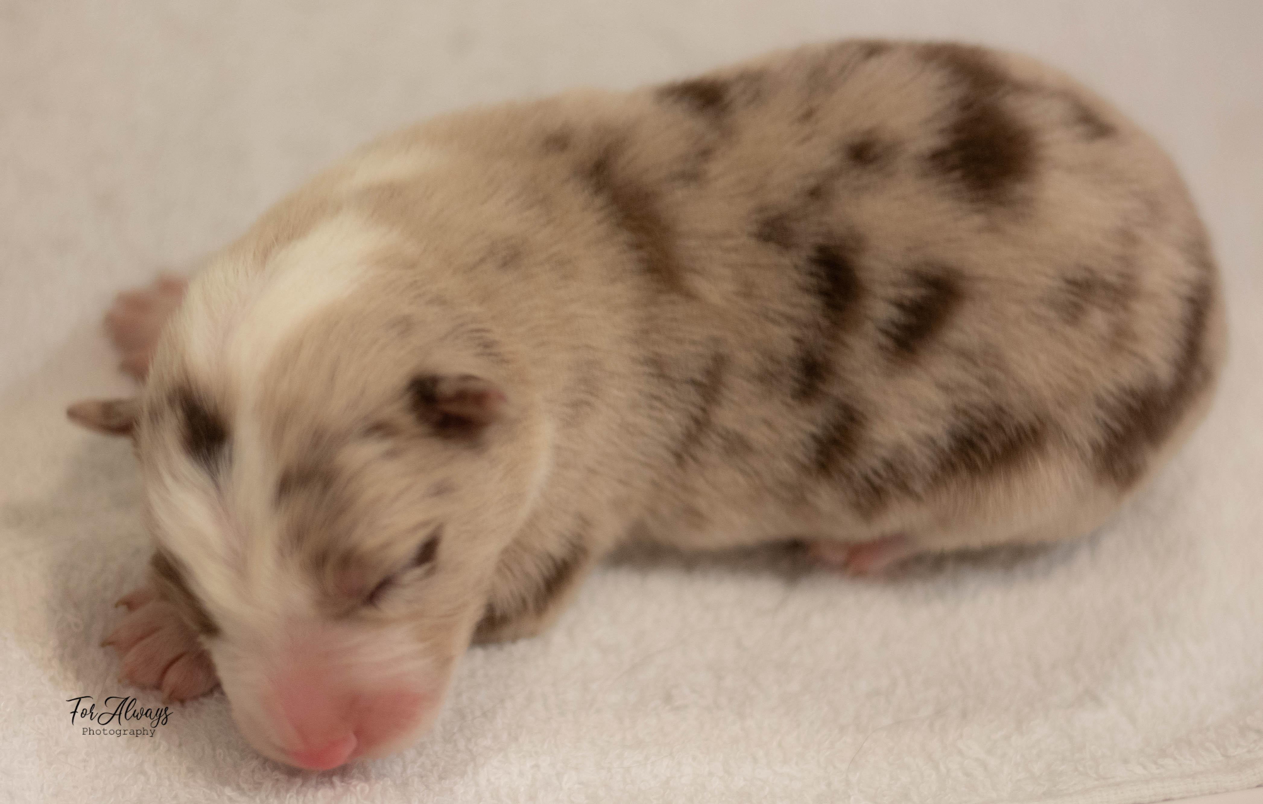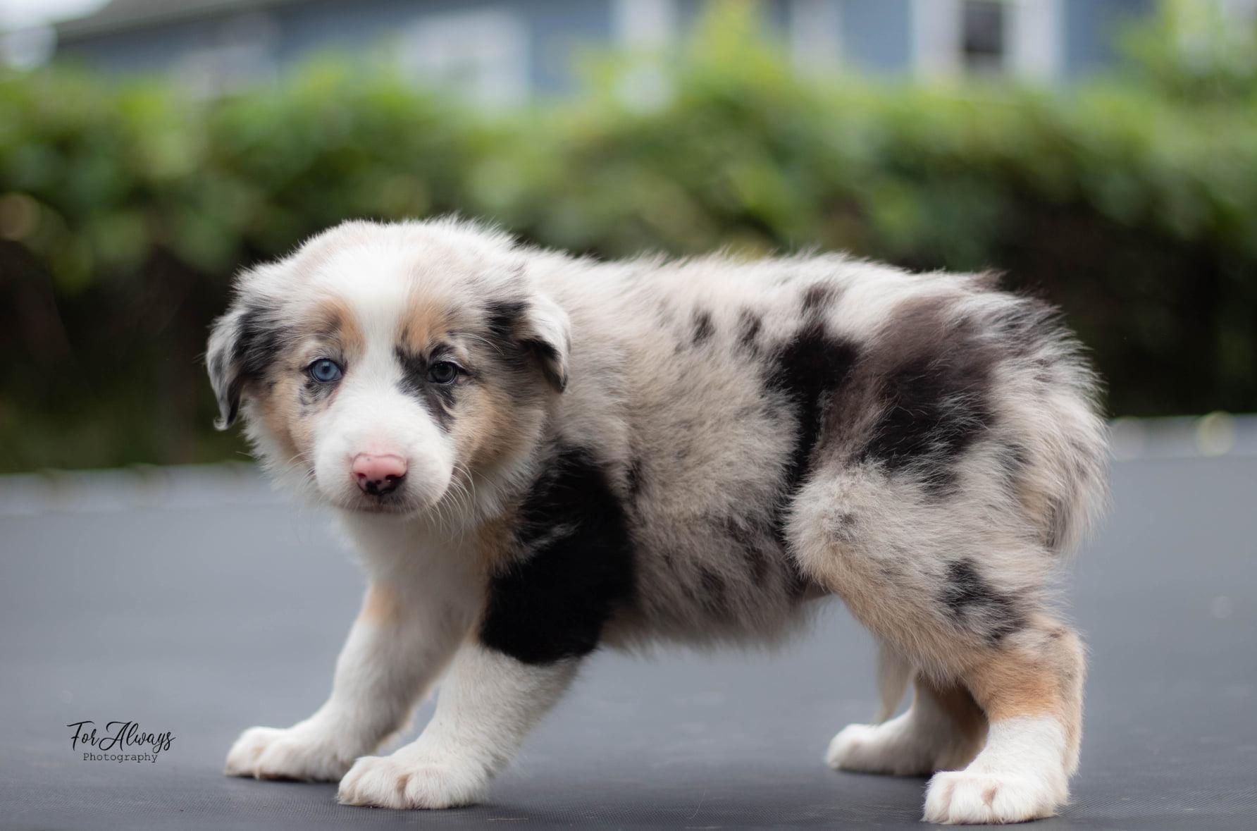 Our puppies include blue merle, red merle, black, red, white and blue merle, white and red, white and red merle, and white ticked. Colors will vary depending on the parent dogs.
