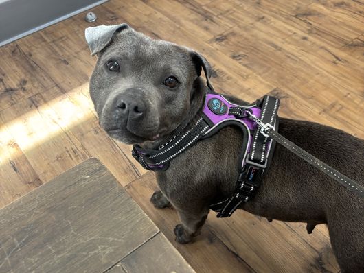 Our first Staffy (Harley) joined our family in 2020. We waited a couple years for her to arrive and so happy we picked her to be a part of our family. Because of her temperament, beauty, and fun loving characteristic, we are compelled to share the breed with other loving families looking for a best friend.
