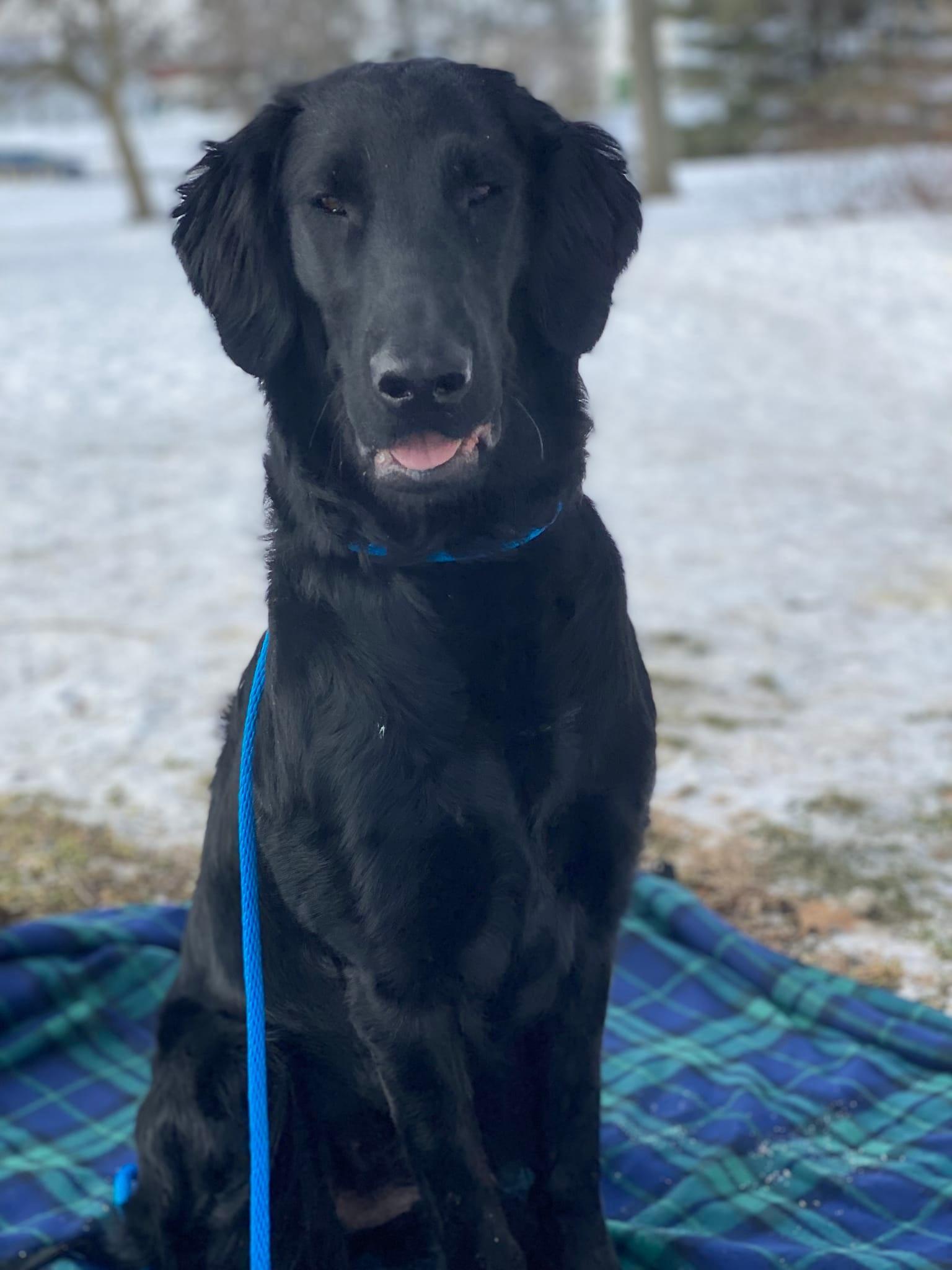Windy is a female Flat-Coated Retriever about 10 years old. Carefully selected as a great representative of her breed, April decided to make her part of their program. April has passed Good Dog’s screening process, which involved a review of their breeding practices, environment, and the mental and physical health of their dogs.