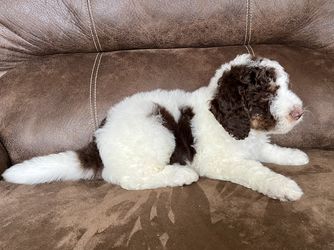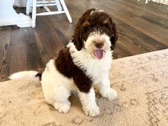 Reba is a female Goldendoodle. Carefully selected as a great representative of her breed, Joel decided to make her part of their program. Joel has passed Good Dog’s screening process, which involved a review of their breeding practices, environment, and the mental and physical health of their dogs.