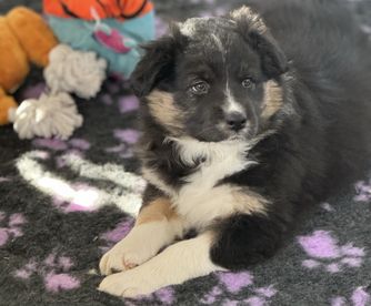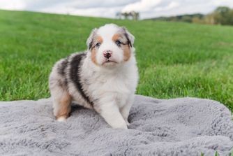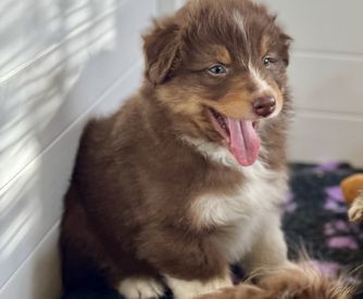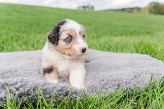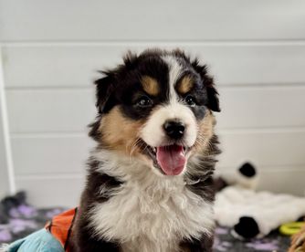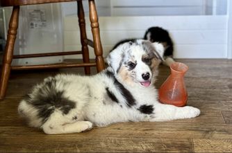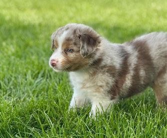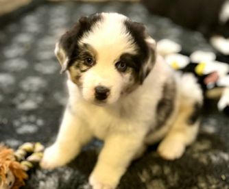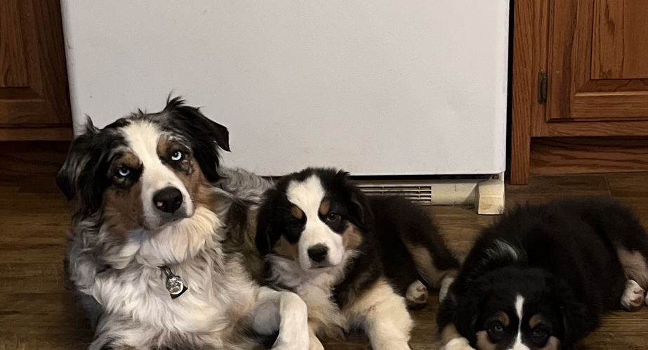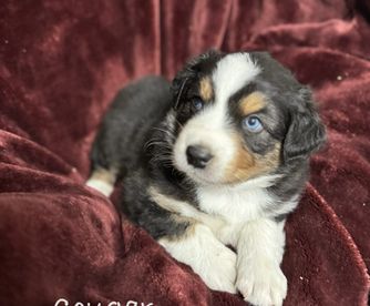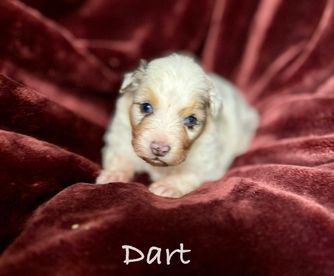 Our Australian Shepherd puppies include red merle, blue merle, and black tri-color. Aussiedoodle puppies include black phantom, black tri-color, red phantom, and red tri-color. Colors will vary depending on the parent dogs.