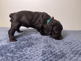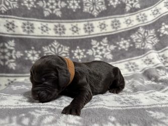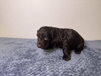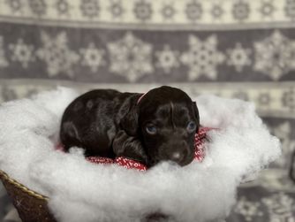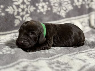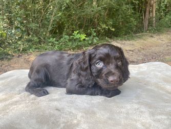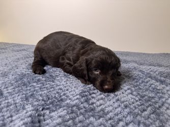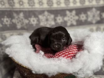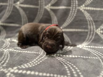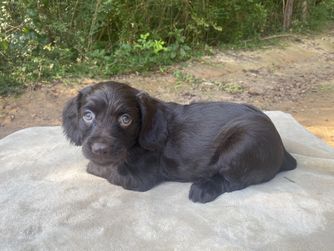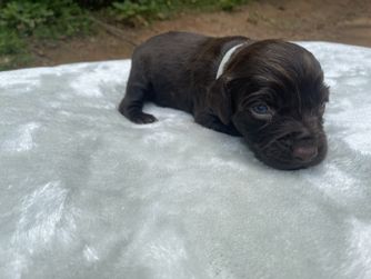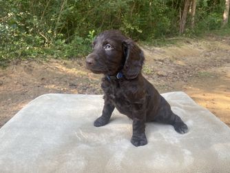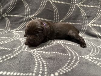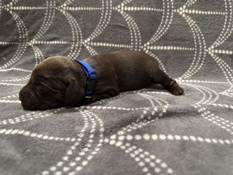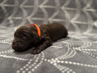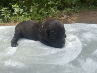 Our puppies include chocolate and liver. Colors will vary depending on the parent dogs.