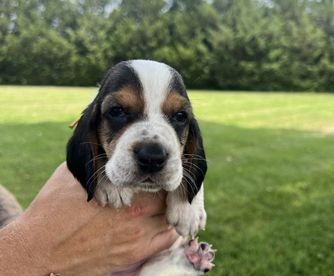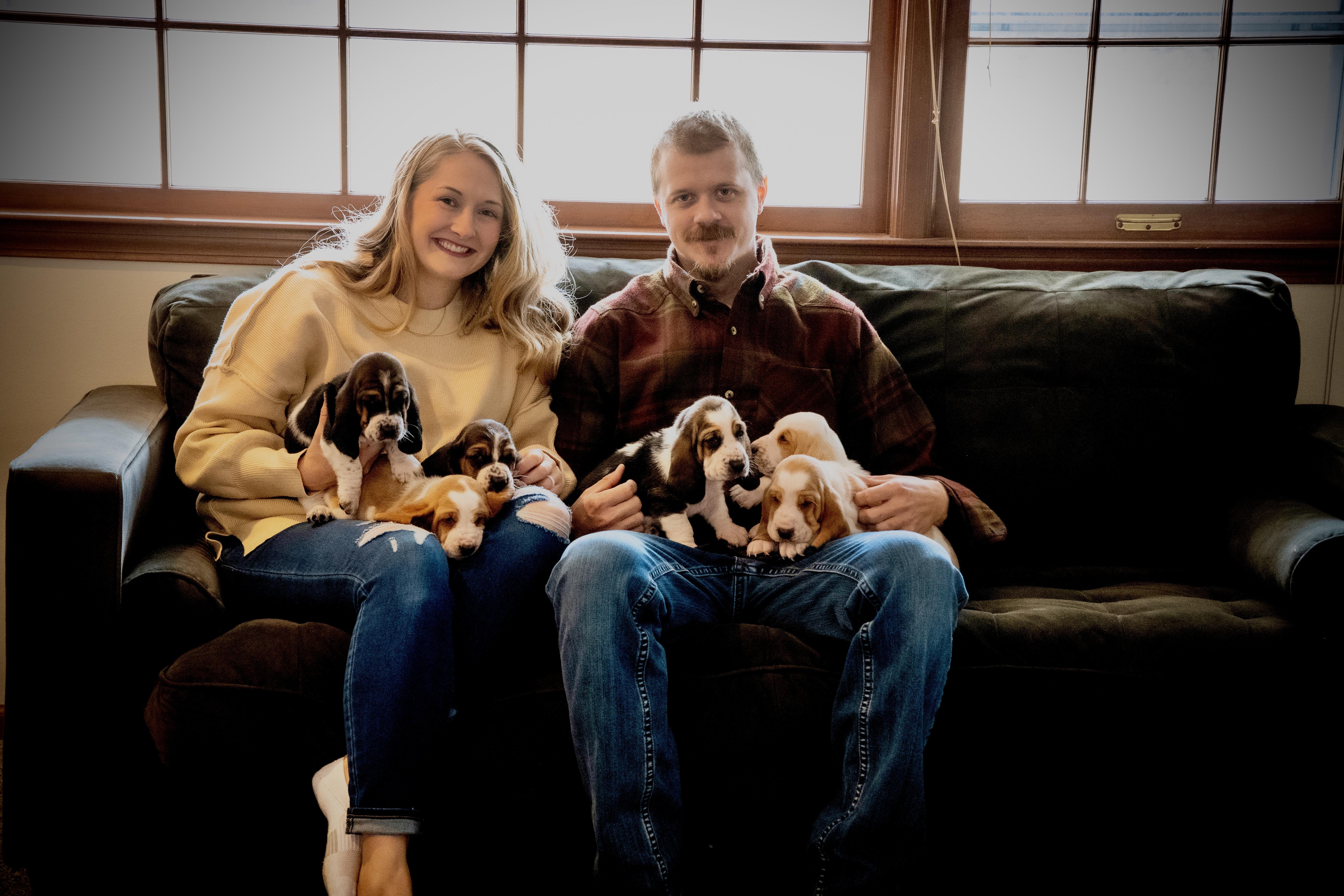 Our story began in 2021 on Father’s day as we welcomed our first Basset Hound to the family. Our love for the breed blossomed and have since welcomed four more to our family! We chose them because they are great with our kids and have such a slow pace life. Their long floppy ears and droopy eyes have won us over.