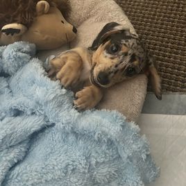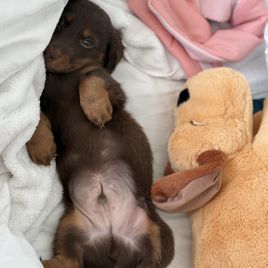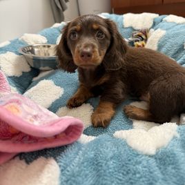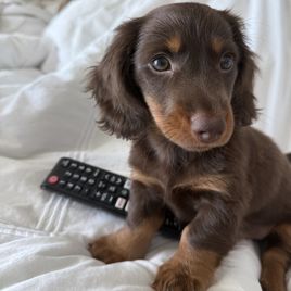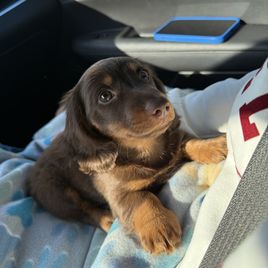 My family and I are so appreciative and thankful for the wonderful experience we had with Susan. We are overjoyed to have found Copper, she is the perfect fit for our family and is such a loving, playful puppy. Susan made the entire process as easy as possible by being ready to answer any questions we had. My kids were anxious to see Copper, and Susan immediately sent us tons of pictures and videos. We were so impressed how smart Copper was when arriving home we had everything set up for her with potty pads and noticed she was potty trained which made it very easy for us. Copper was all ready for us when we got there she was freshly bathed, had her favorite toy, a blanket, food to get her going, and all of her personal documents. This was my first time using the app, Good Dog made paying and navigating incredibly simple, safe, and convenient. I was extremely happy with my experience. We truly appreciate Susan and highly recommend her to anyone searching for a dachshund 🐶💕