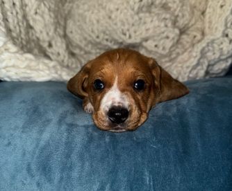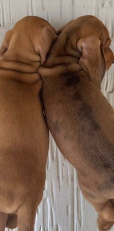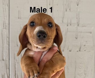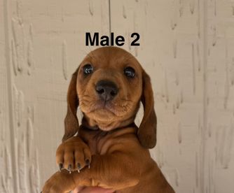 Our puppies include red, black, and chocolate and tan. Colors will vary depending on the parent dogs.