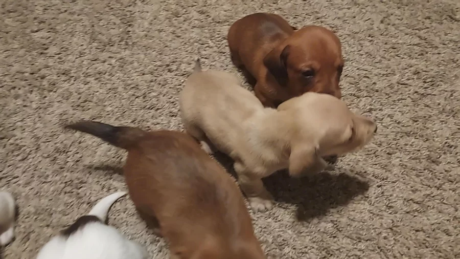 I'm Raven T., the breeder behind Weiner Warriors located in Memphis, TX. Our pups are AKC registered and go to their forever homes with their first puppy shots done, a microchip installed, are wormed every two weeks, and come with a puppy starter kit.