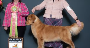 Rainbow is a female Golden Retriever. Carefully selected as a great representative of her breed, Becky decided to make her part of their program. Becky has passed Good Dog’s screening process, which involved a review of their breeding practices, environment, and the mental and physical health of their dogs.