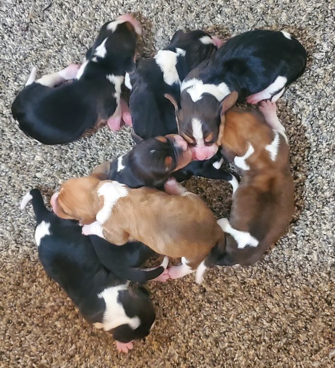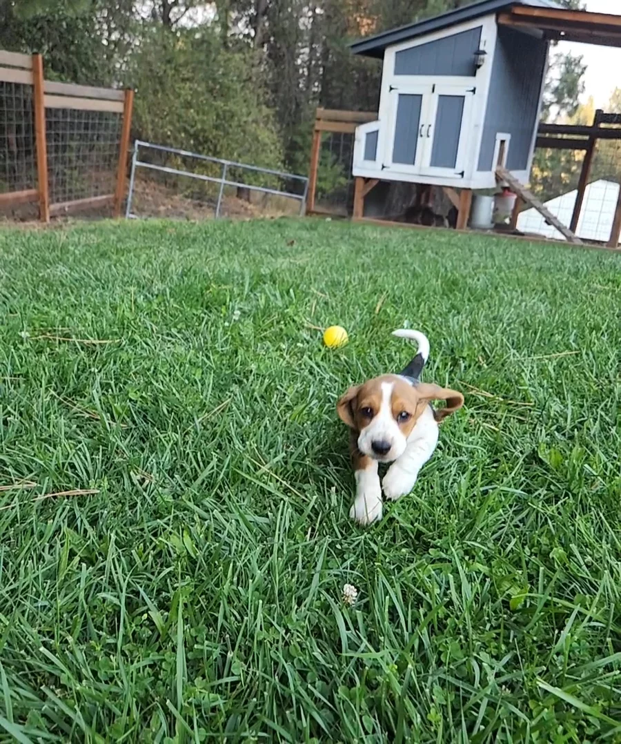 I'm Patrona D., the breeder behind Welcome Home Bassets located in Idaho. Basset puppies tend to be pretty low key, compared to other dog breeds. They are a daily day brightener and bring a smile to the face of everyone they meet! We live on 10 acres of land, and love having the wide open spaces to breath and live and roam, and raise Bassets, alongside our children.