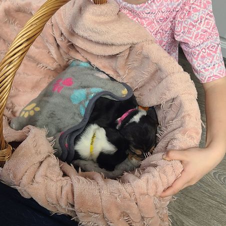 Patrona was fantastic to work with! She was responsive, knowledgeable, and guided us through every step of the process. She patiently answered all my random questions. I’m so thankful I found Patrona and highly recommend getting a Basset Hound from her. She is a responsible breeder who truly cares, and I appreciate her genuine kindness. If you’re looking for a dog with a ton of personality and heart, these dogs are your go-to! Patrona’s knowledge and dedication truly shine through in these amazing dogs. Now, onto Pearl—she is such a smart and lively girl! She had potty training down for the most part and already knew how to sit when we got her. She quickly learned new tricks like "come" and "shake," showing just how eager she is to learn. She loves naps, playing with her toys, and exploring outside. She was also crate trained and does really well in her crate, making the transition home so much smoother.