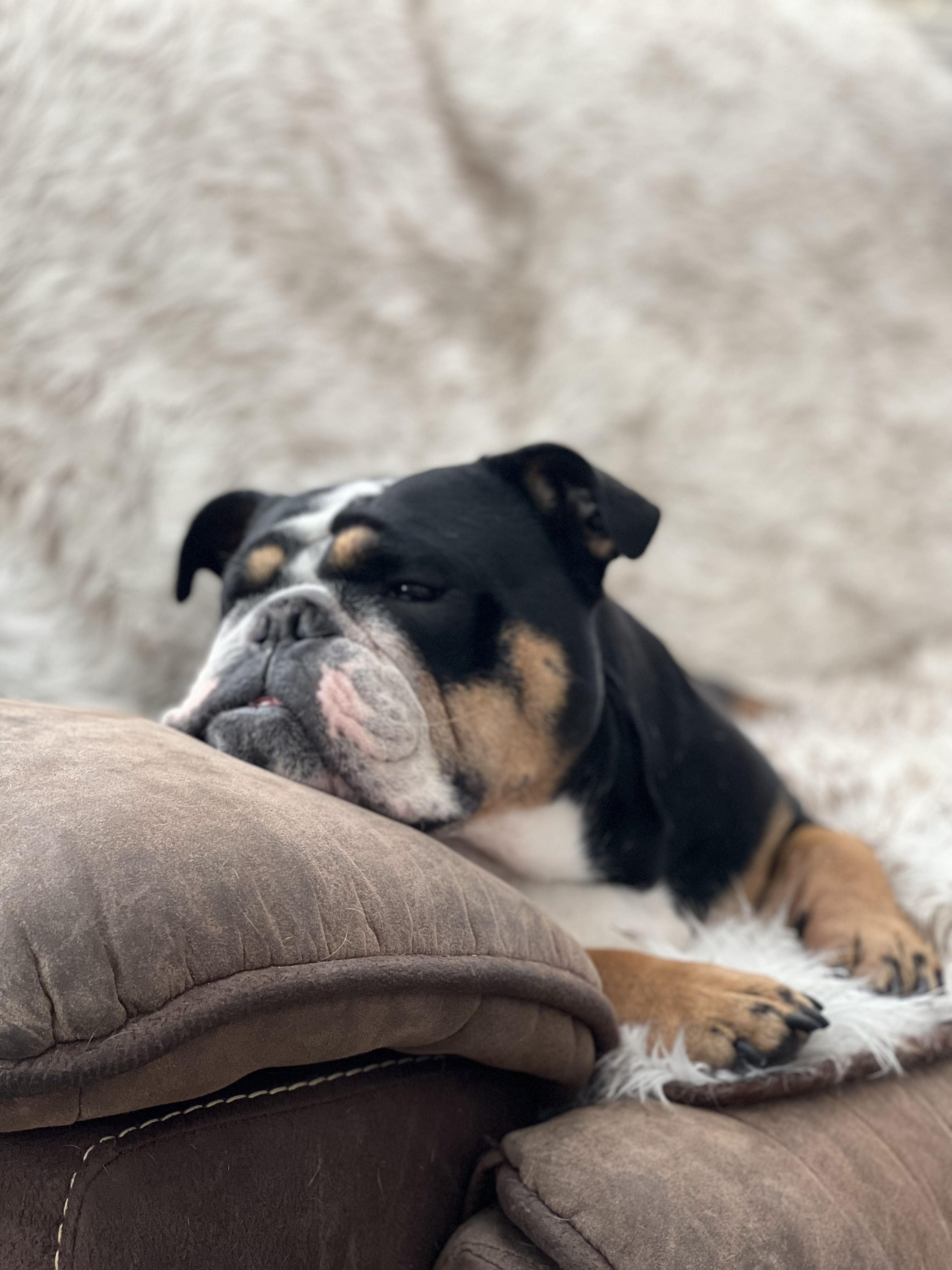 My husband grew up on a horse ranch and his family bred bulldogs. He introduced me to these beautiful puppies in 2016 by surprising my with Dude on Christmas Day and I've been hooked ever since. Dude has been a stud dog and I've fallen in love with every single litter he's sired. We adopted our son's female when he began developing pet allergies and decided to breed our first litter. I was in love!