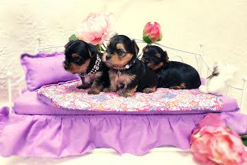 These little babies are my children I floss their teeth I clean their hienys, their ears, I bathe and groom them. I do their toenails I take them with me and I make their food. They are all very healthy,no foul odors with teeth.I haven’t had to have them cleaned in four years. I love having puppies in the house and my Tinky is a very good mother. Bandit and Tinky are very bonded. She allows him in the whelping box, actually, a baby carrier, his nick name is Mr. Happy. They all have excellent dispositions. Great with children and adults. Your new baby will come with a welcome home care package with the current food and where to get it,baby blanket, toy that they have been playing with, and other essentials. tails will be docked,dewclaws removed,and started on paper training. Of course up-to-date on all vaccinations. I socialize the babies with all of my Yorkies and I have them outside and in the grass when they are older.
