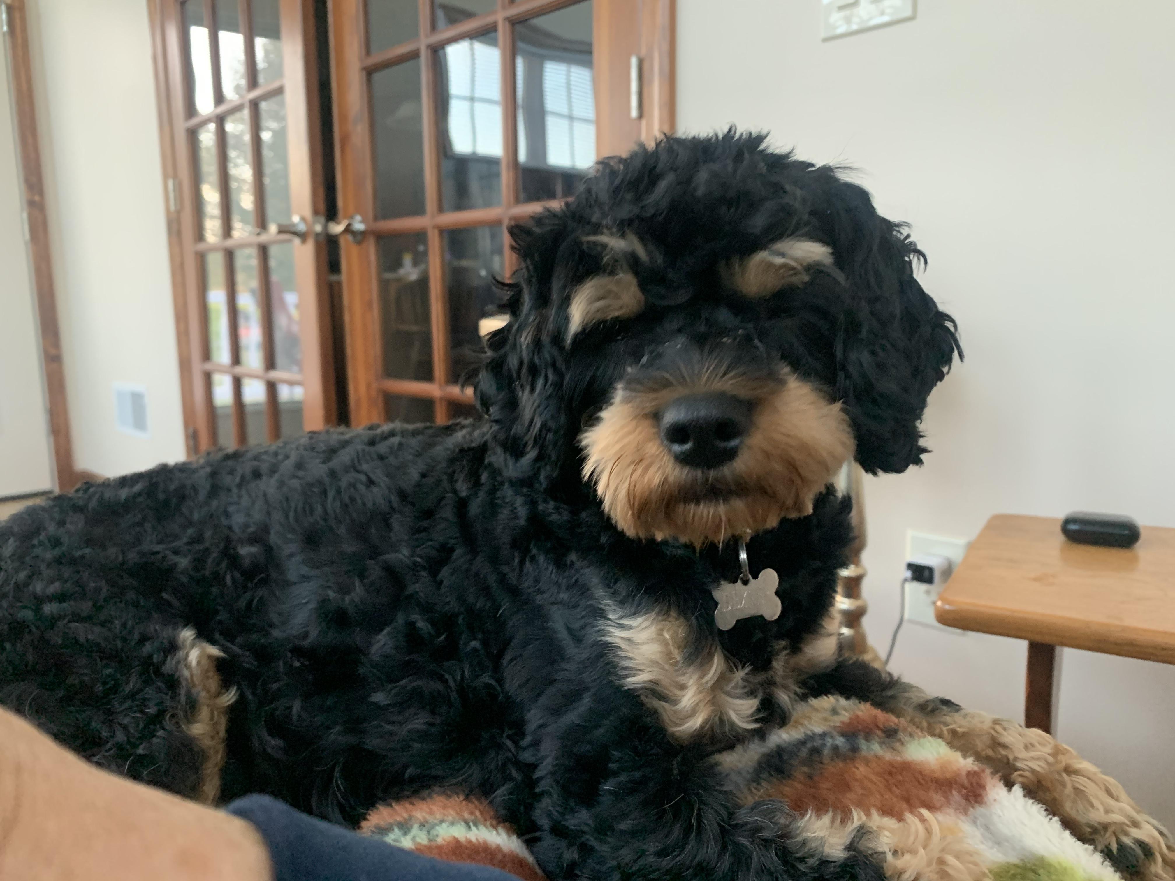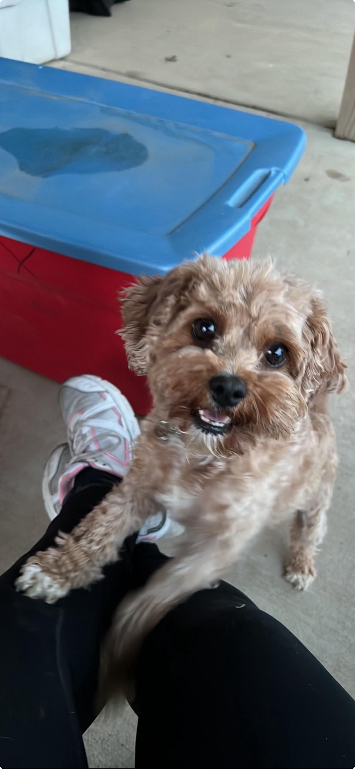 Dexter is a multi-colored (black and tan) male Cavapoo, weighing about 17 lbs. He is currently 4 years old. Dexter is a very friendly, playful dog who enjoys other dogs and people.