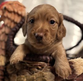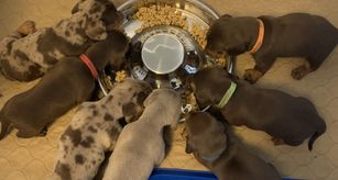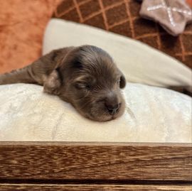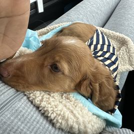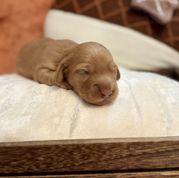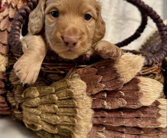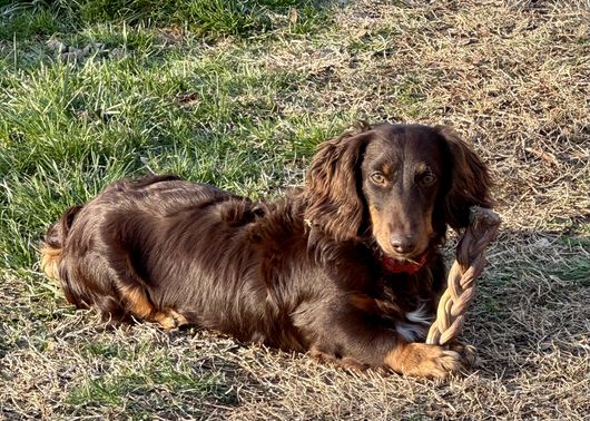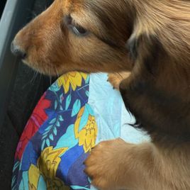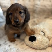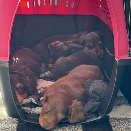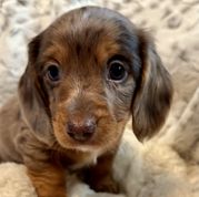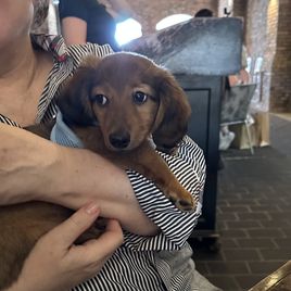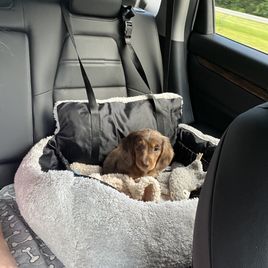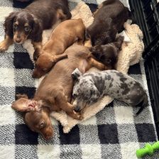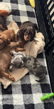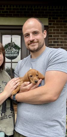 Wendy was so great to work with! I had done so much research since I had been wanting a dachshund practically forever and as soon as I found her on good dog and saw my little guy, Franklin, I knew they were the ones for me! She made the process so easy and sent me progress updates and pictures until the day we came to get him. When my family and I arrived she had Franklin and all of his siblings playing outside on the porch together. She already had him microchipped as well and was very informative and answered all my questions and concerns with ease! Franklin is the sweetest and happiest boy I have ever met, I definitely choose the right boy for me and I cannot thank Wendy enough for raising such good pups:) I love him so much thank you for gifting me my little companion for my 25th birthday, he truly is the best birthday present I could ever receive!