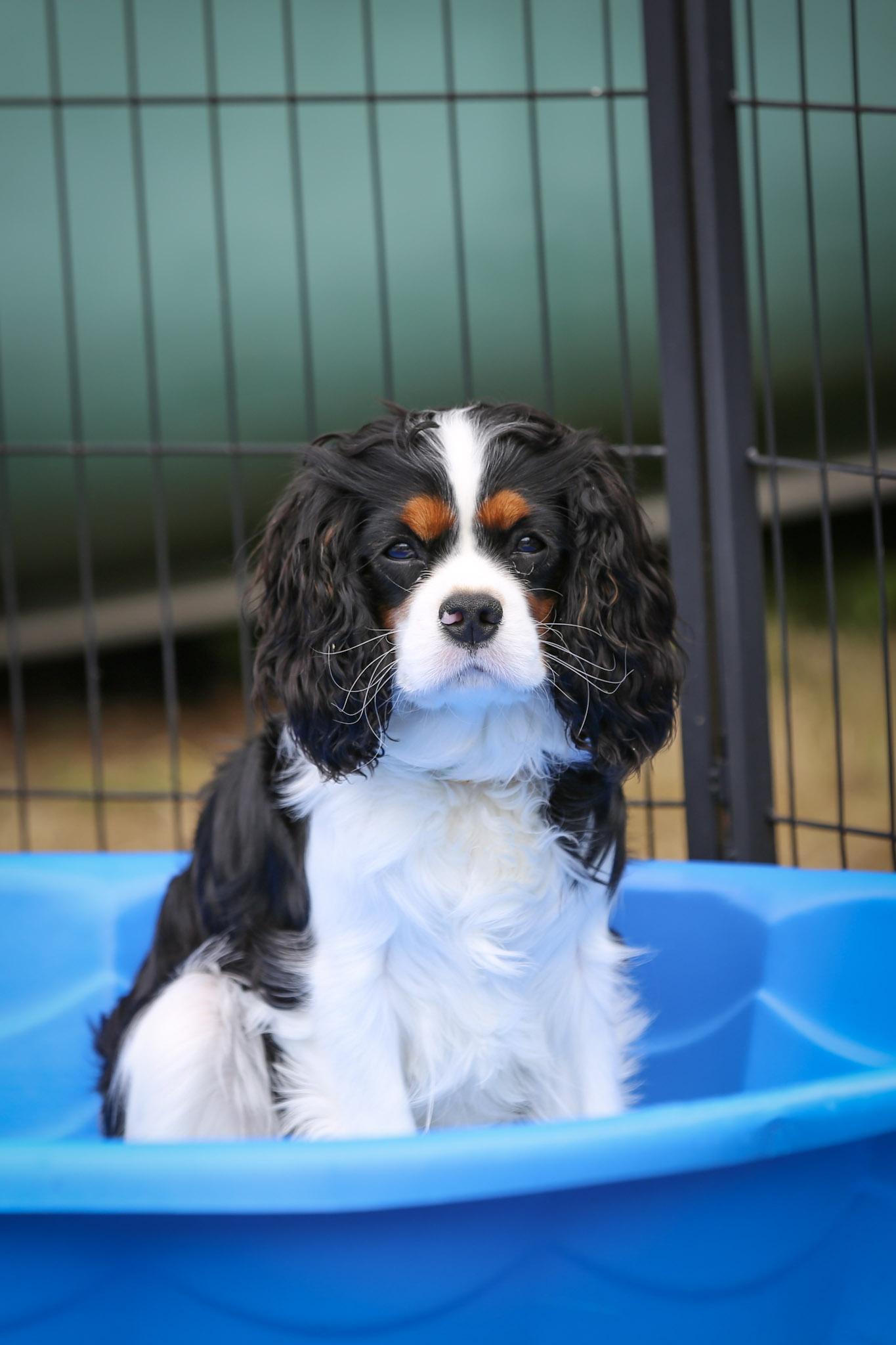 Our puppies include blenheim, ruby, black and white, black and tan, tri-color, and chocolate. Colors will vary depending on the parent dogs.