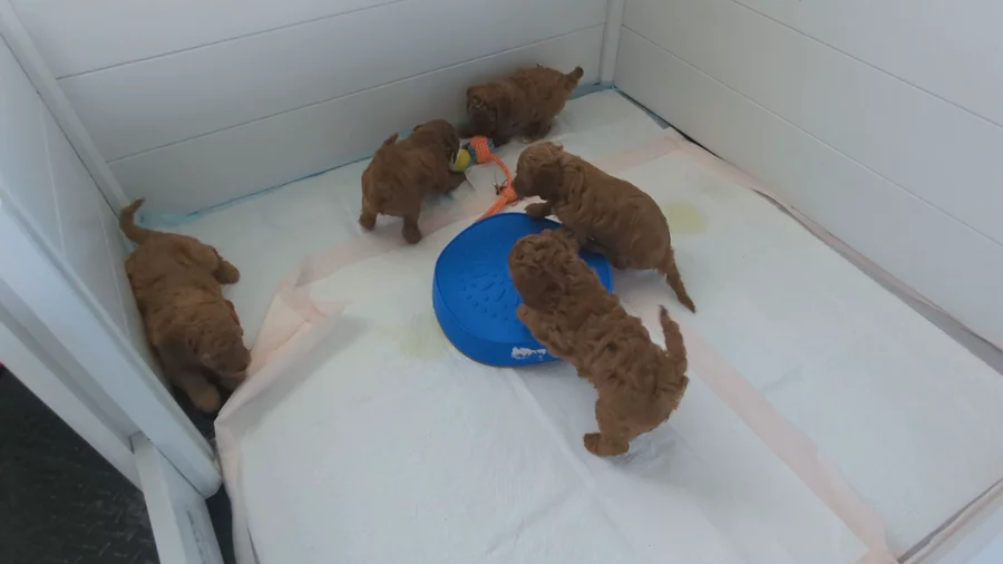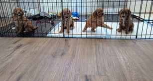 Our puppies include red and apricot. Colors will vary depending on the parent dogs.