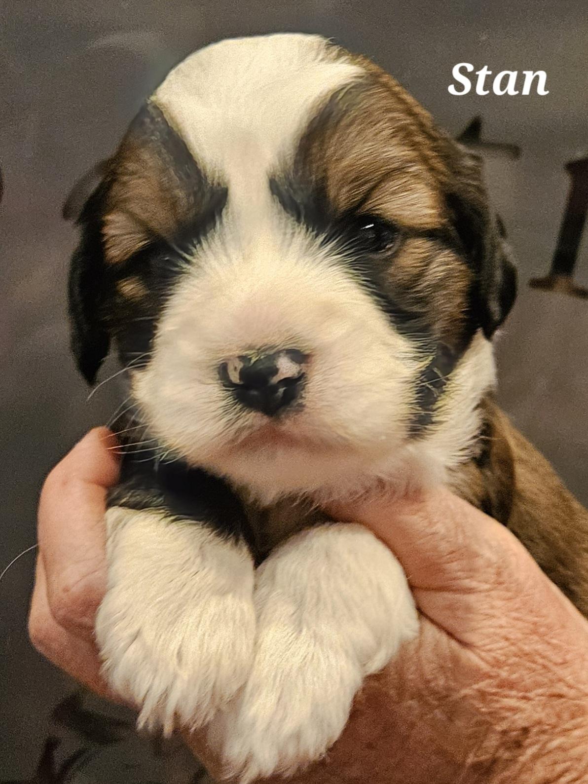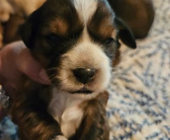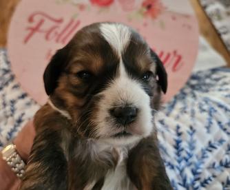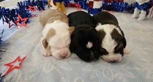 Our puppies include black brown and white, black and white, gold and white, and sable. Colors will vary depending on the parent dogs.